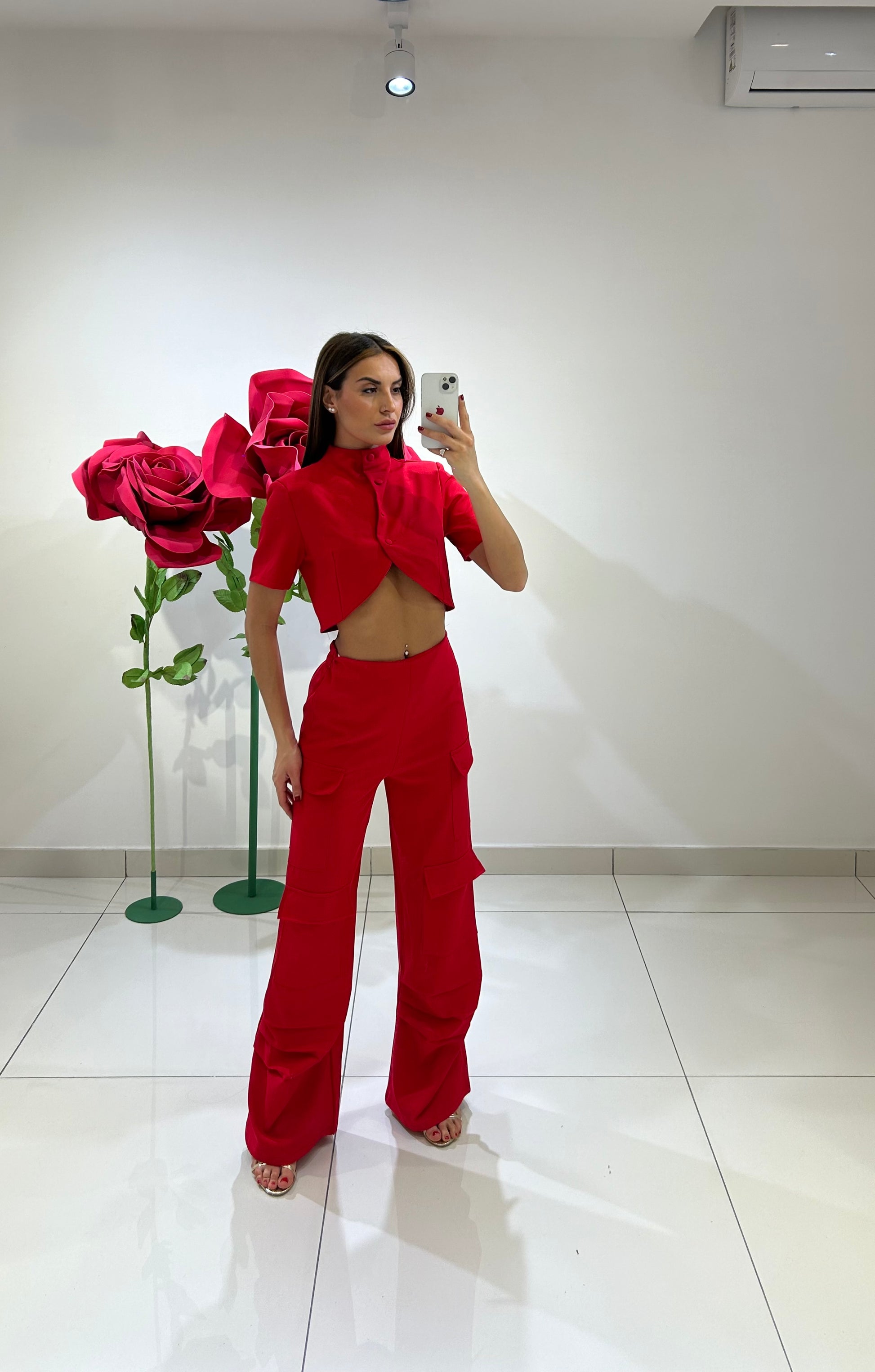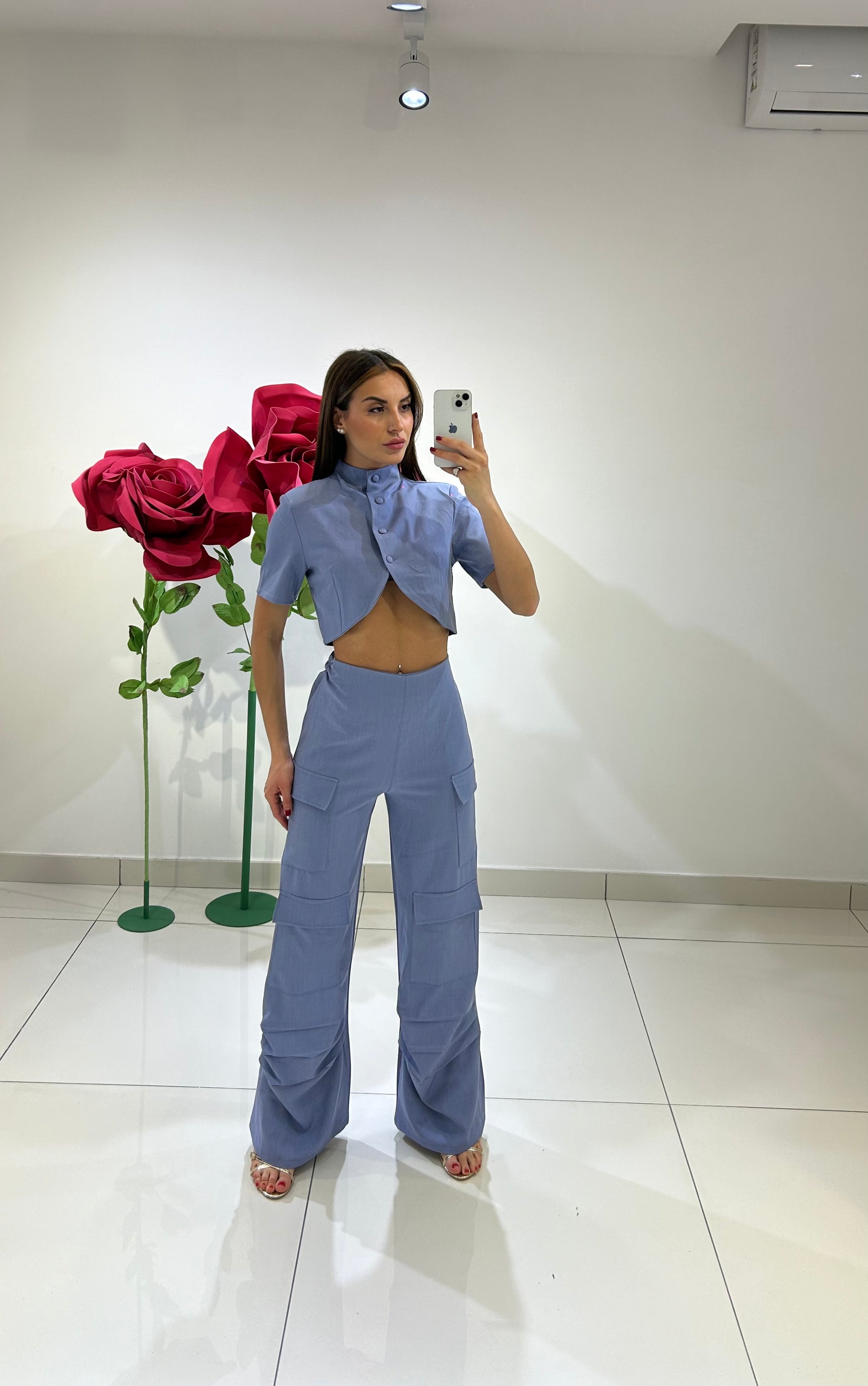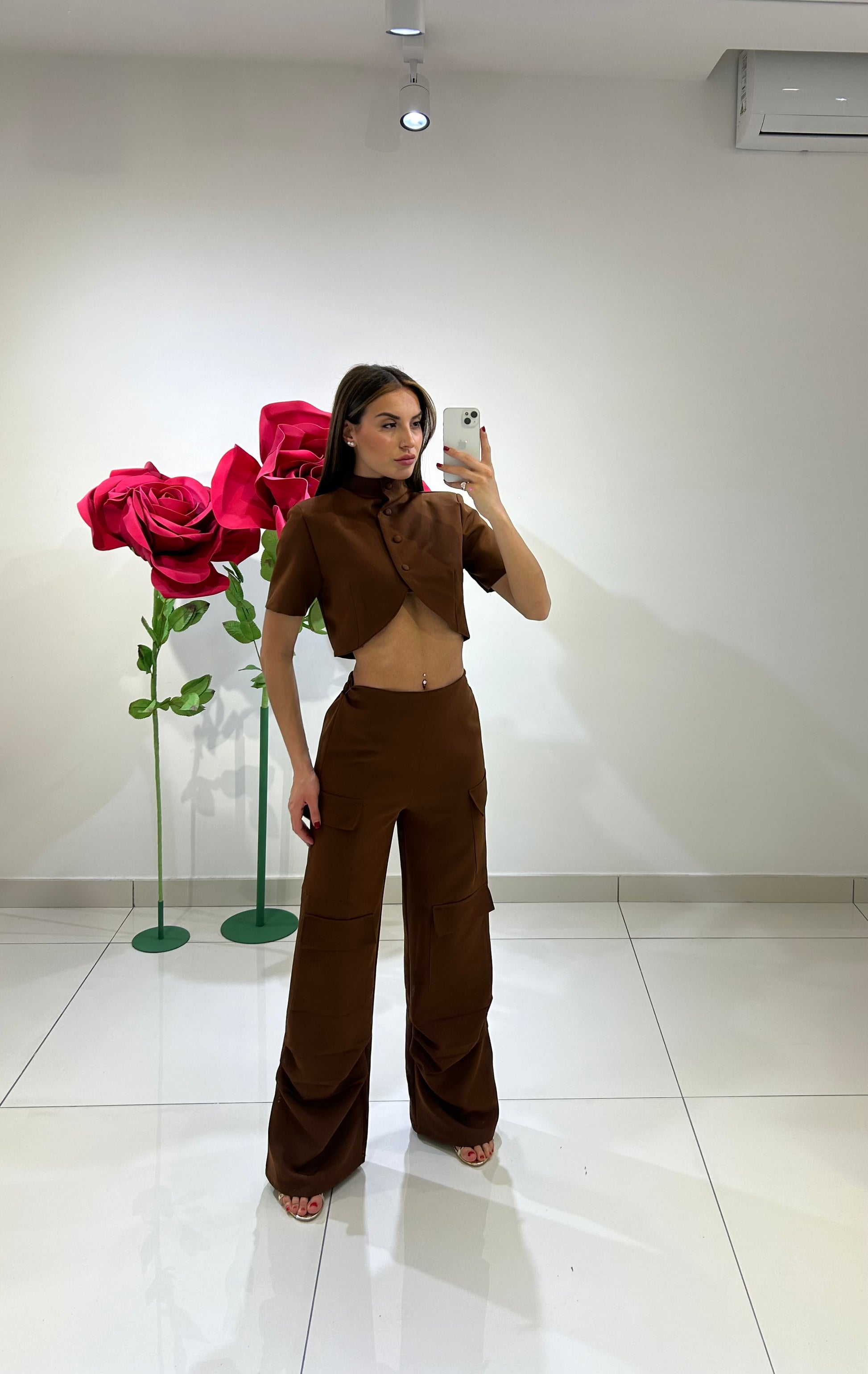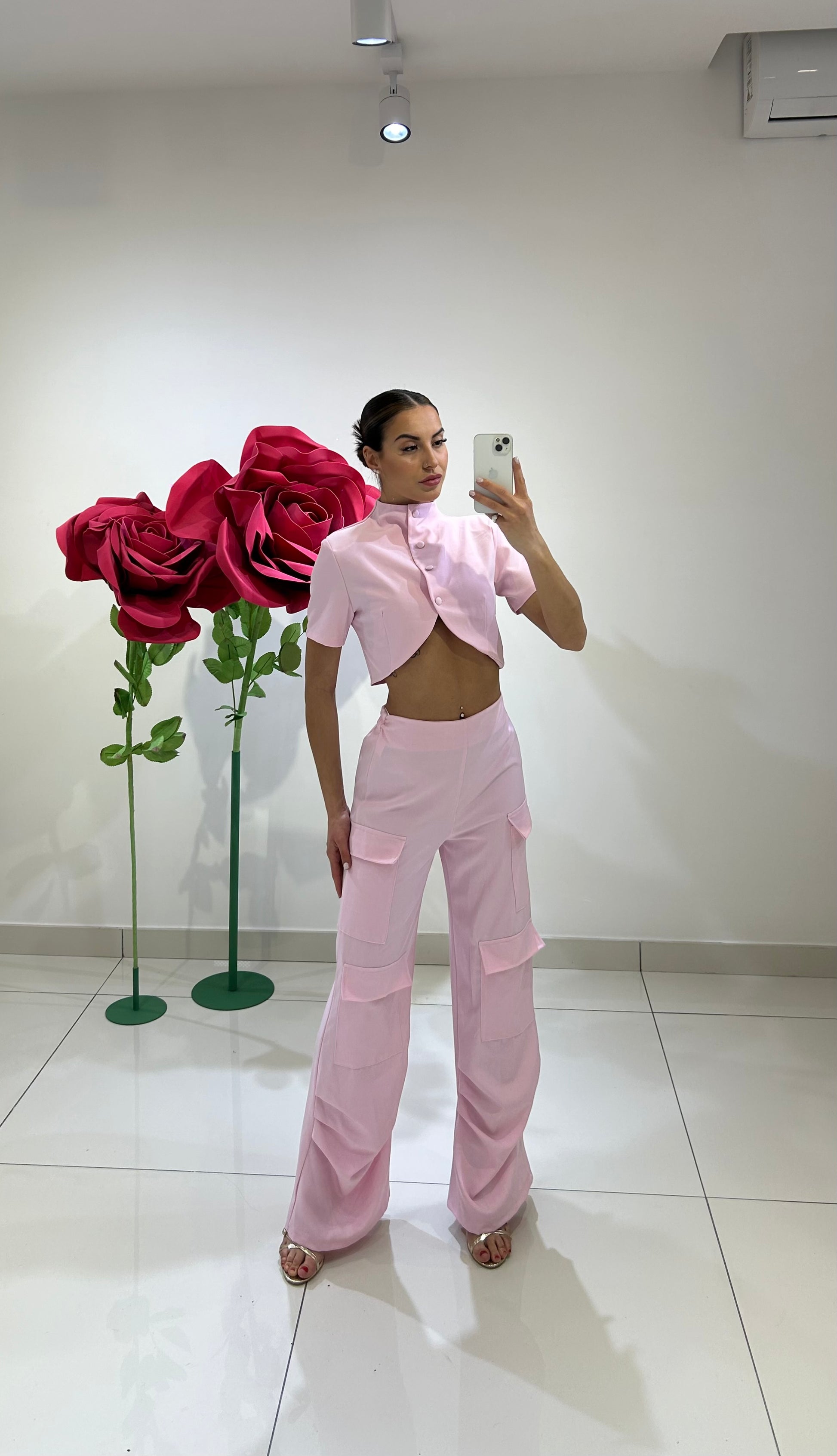 COORDINATO COMPOSTO DA GIACCA CROP E PANTALONE CARGO, TAGLIA UNICA