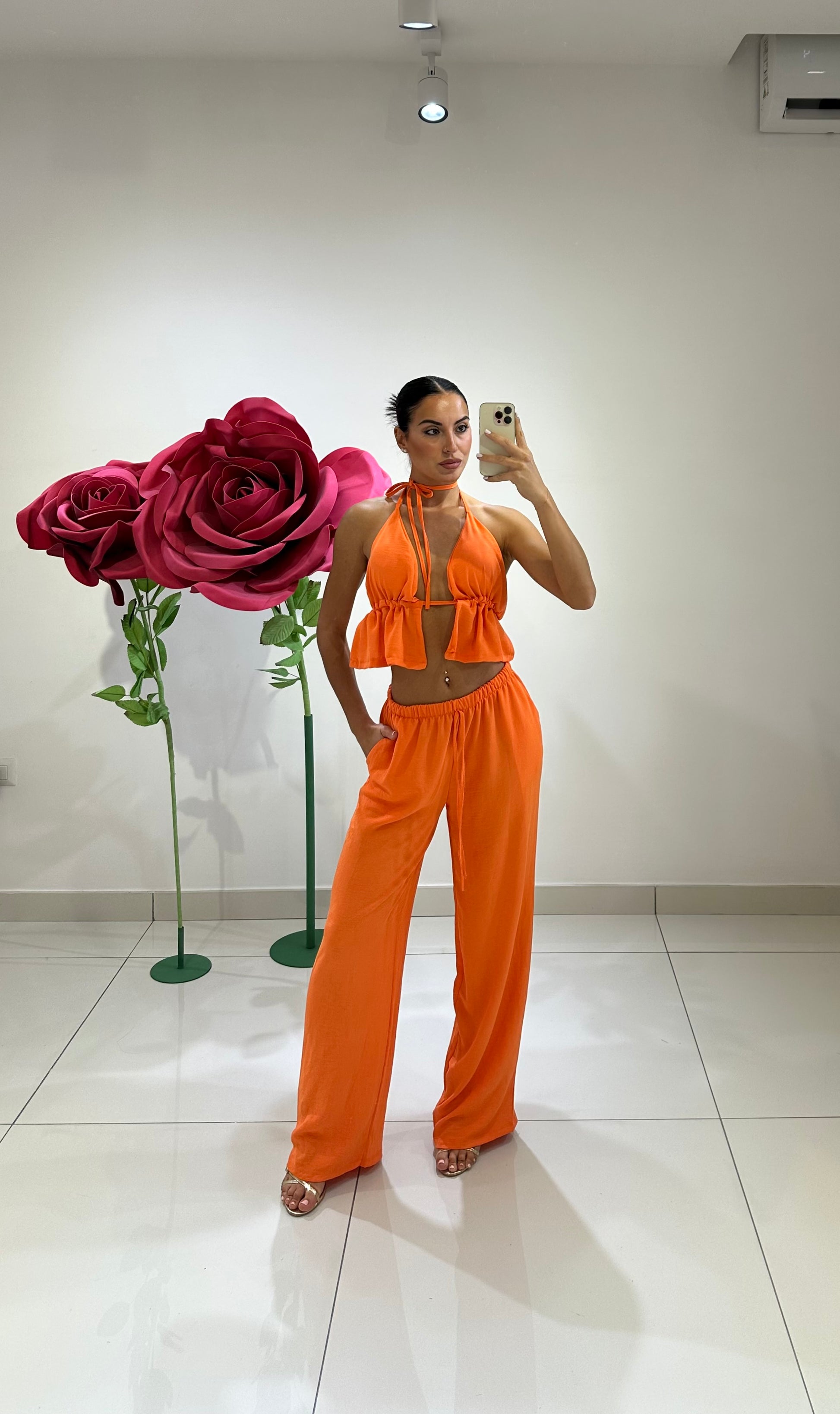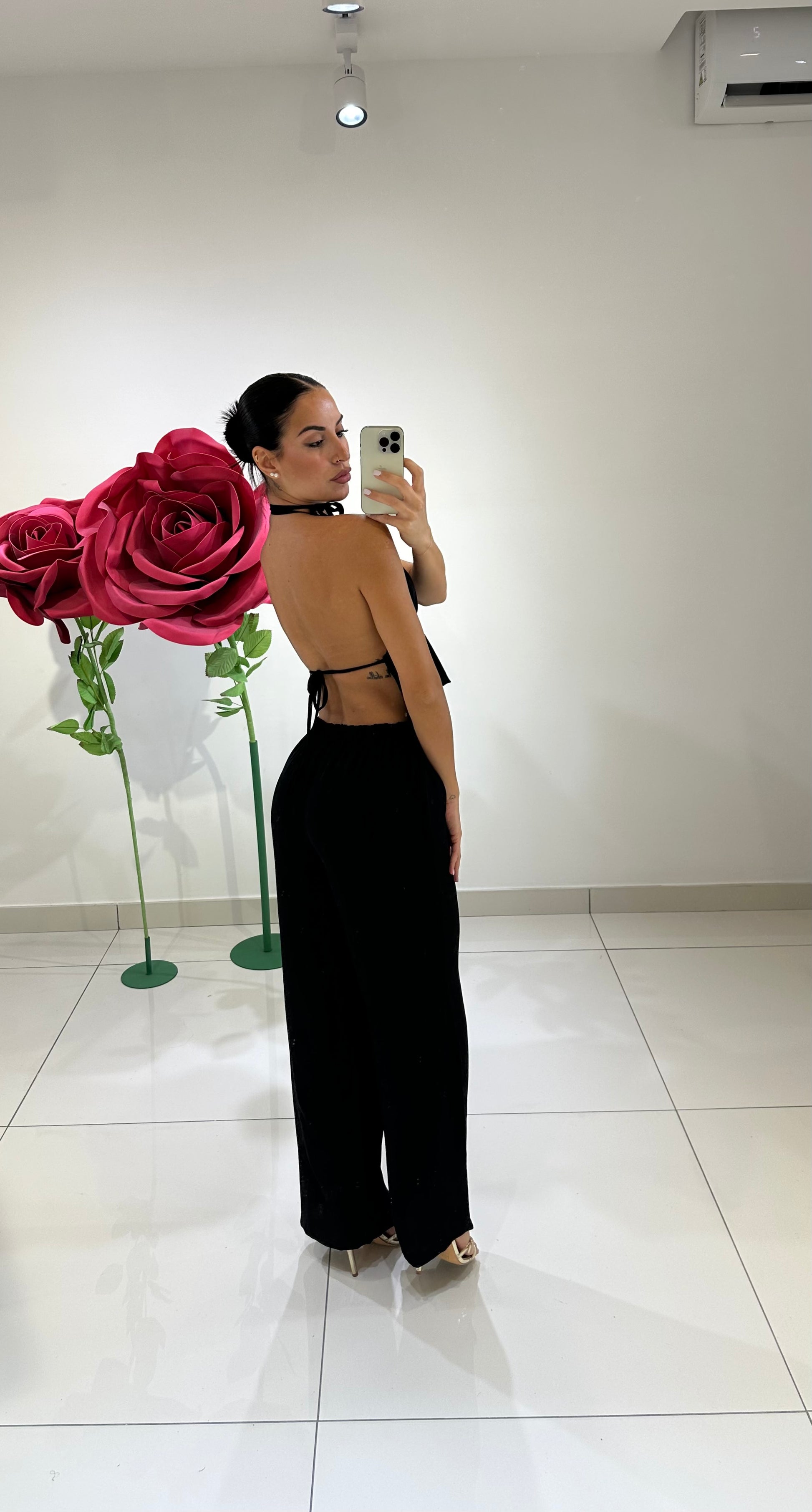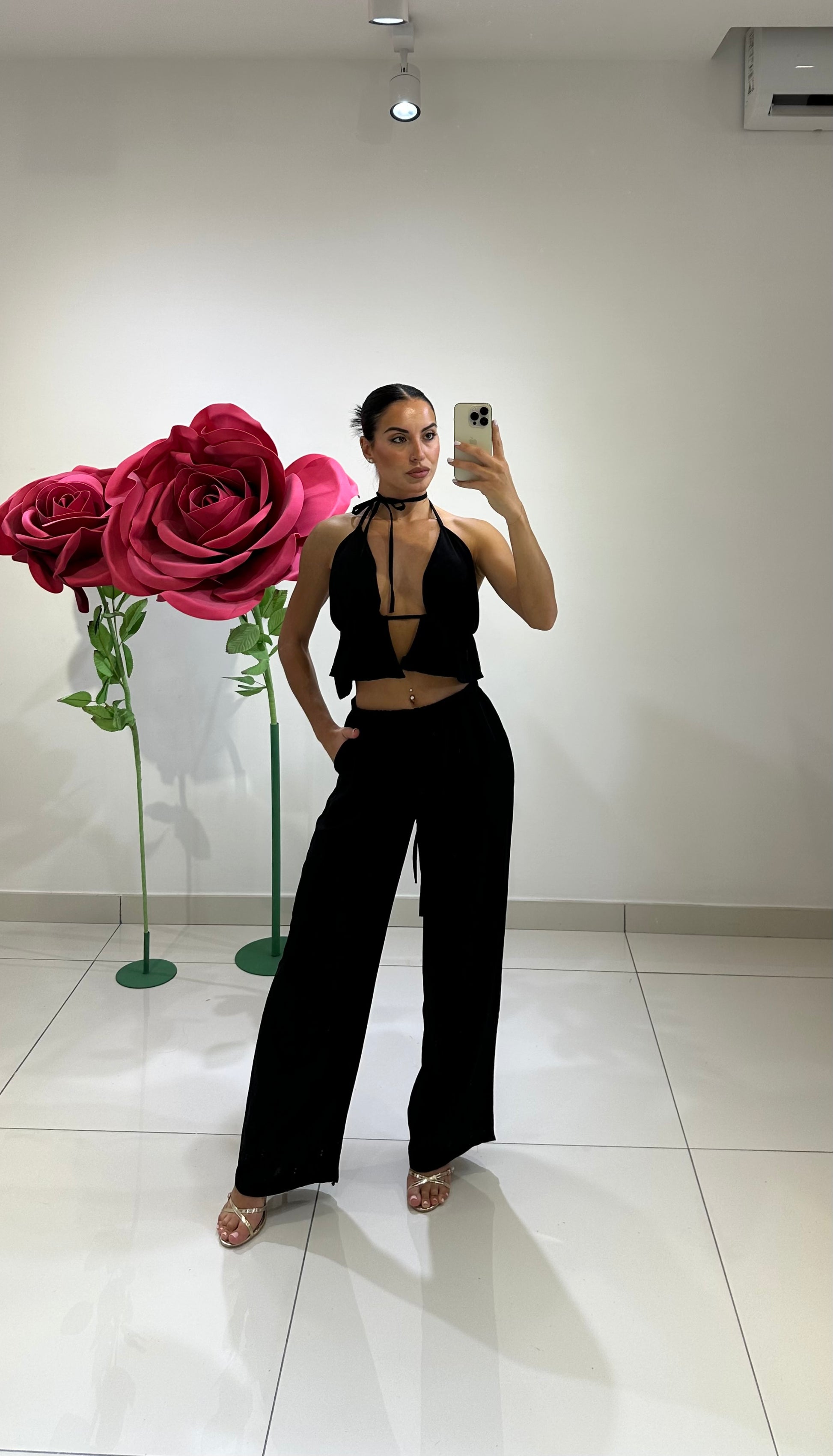 COORDSET CON TOP APERTURA REGOLABILE AVANTI CON COPPE E SCHIENA SCOPERTA, PANTALONE PALAZZO VITA ALTA CON ELASTICO. IN VARI COLORI