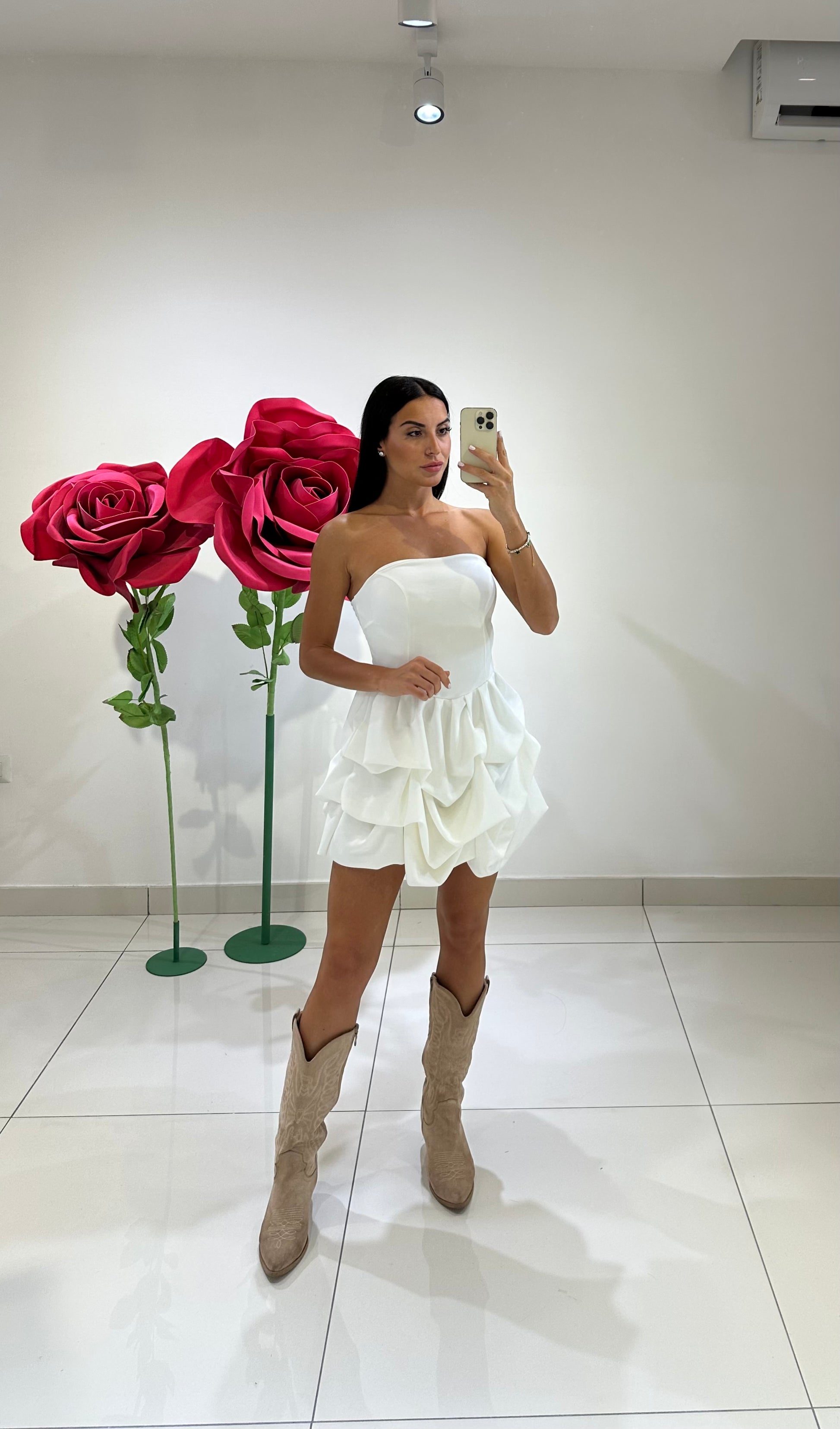 DRESS CON COPPE E GONNA CON BALZE, IN VARI COLORI