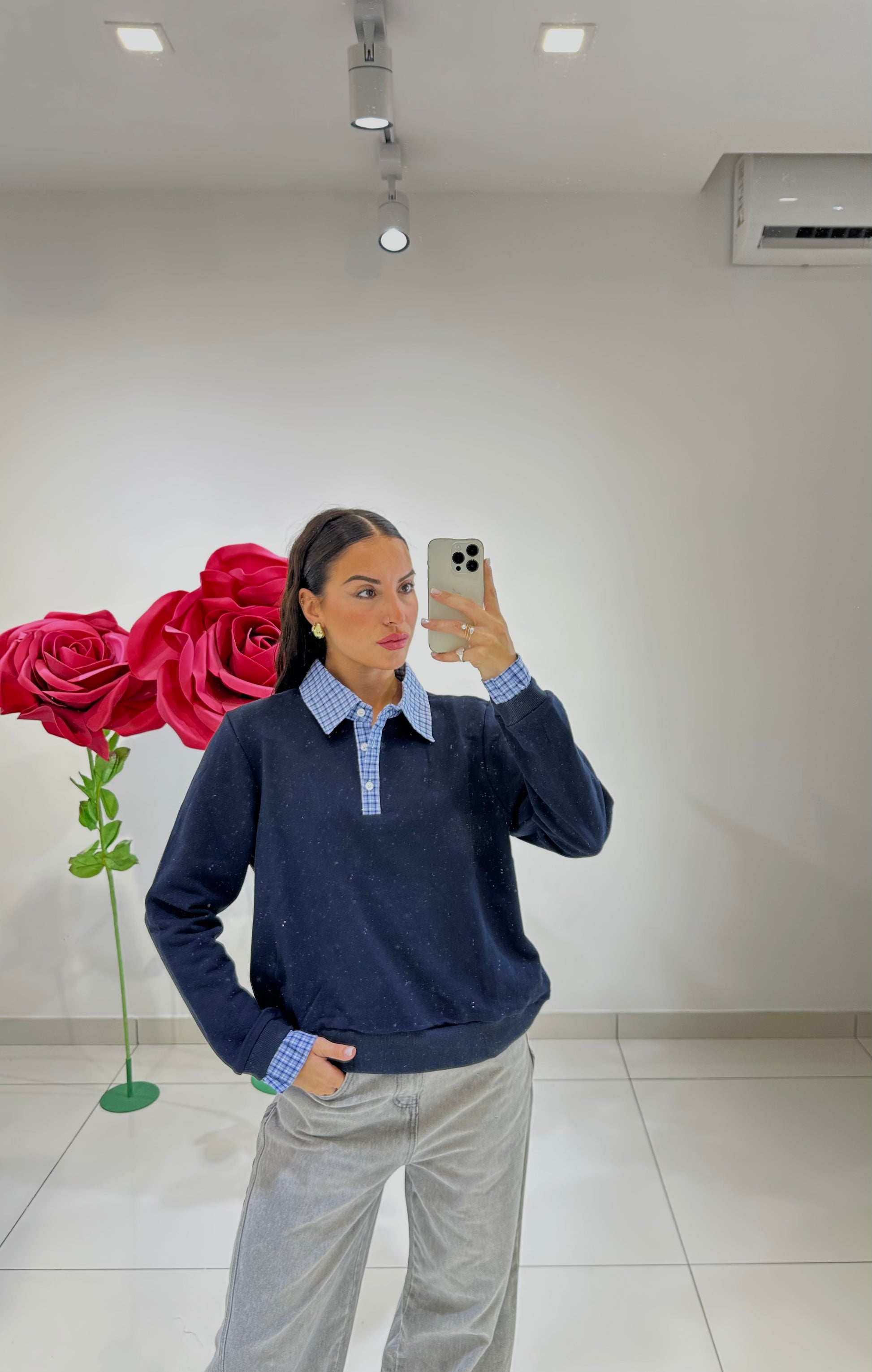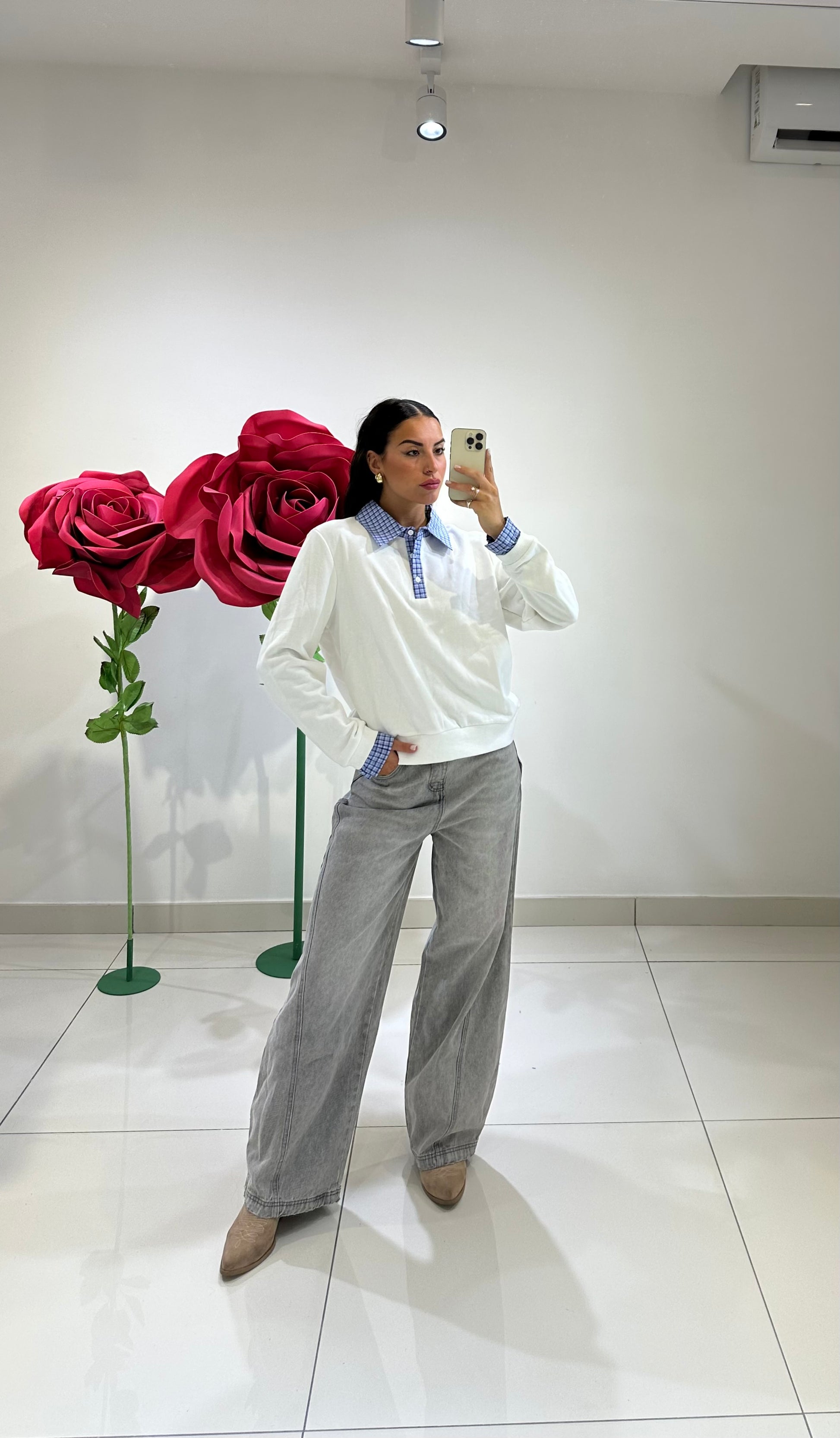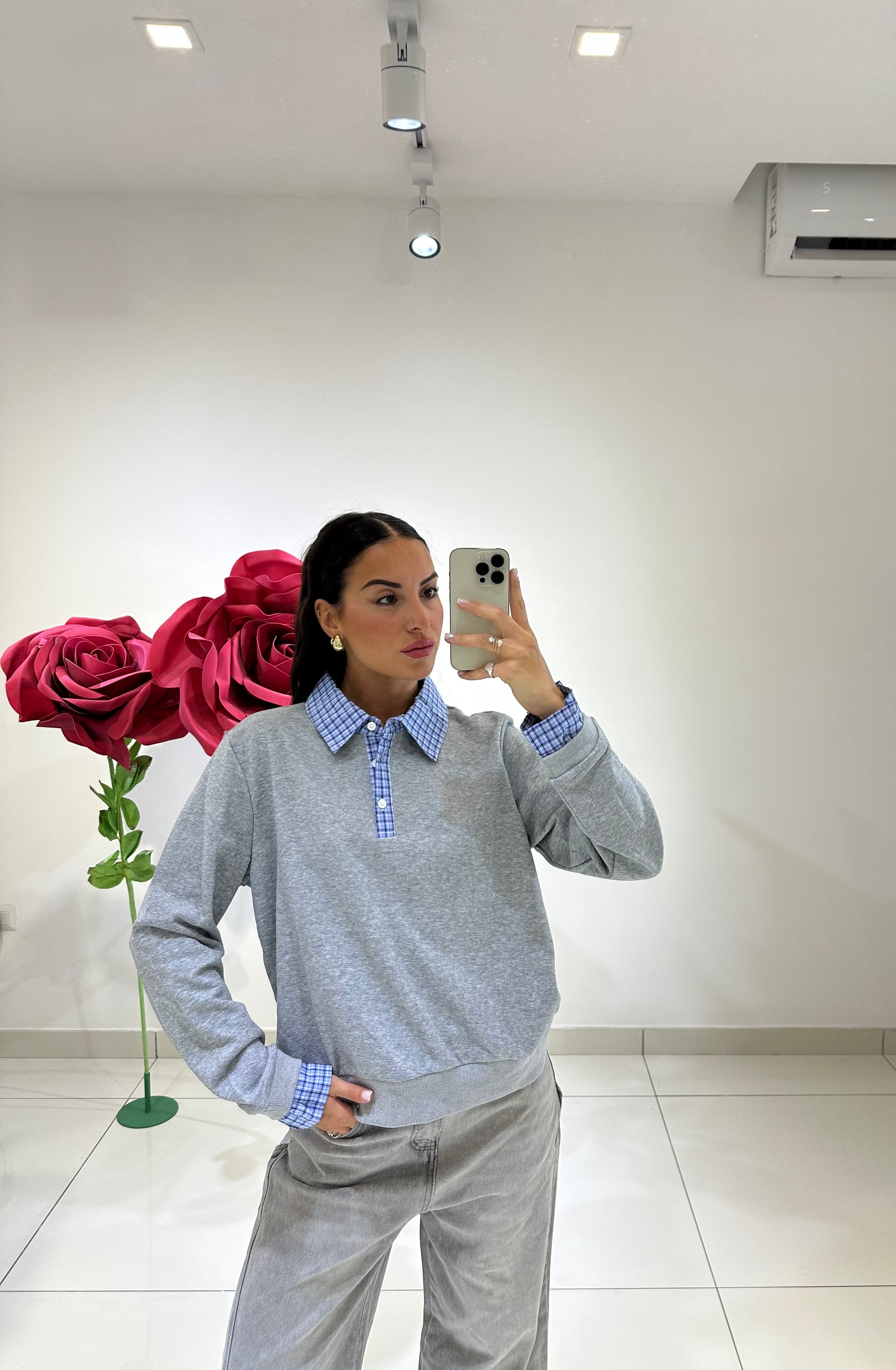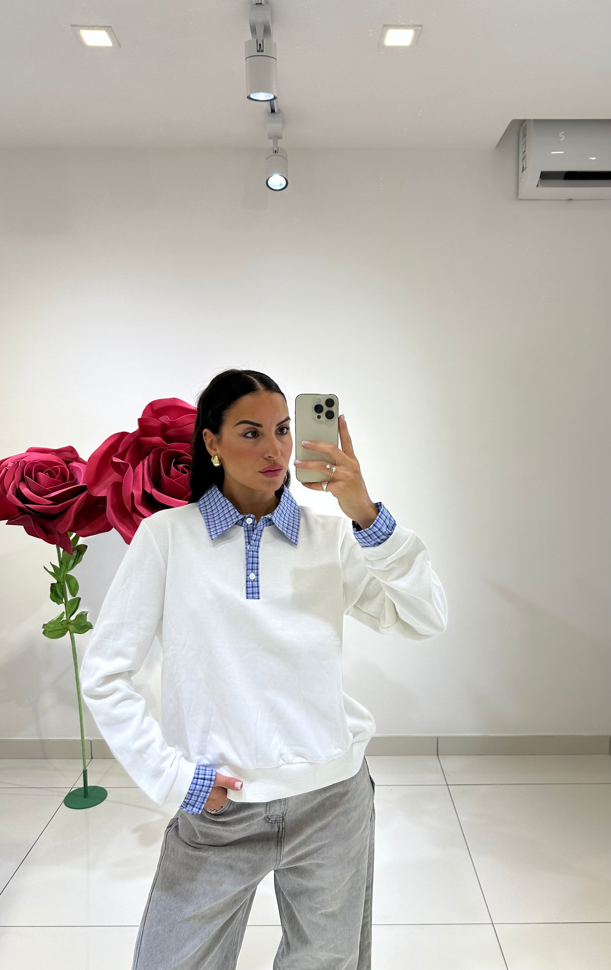 FELPA CON EFFETTO CAMICIA A QUADRI SIA SUL COLLETTO CHE AL POLSO, VESTIBILITÀ OVER. IN VARI COLORI