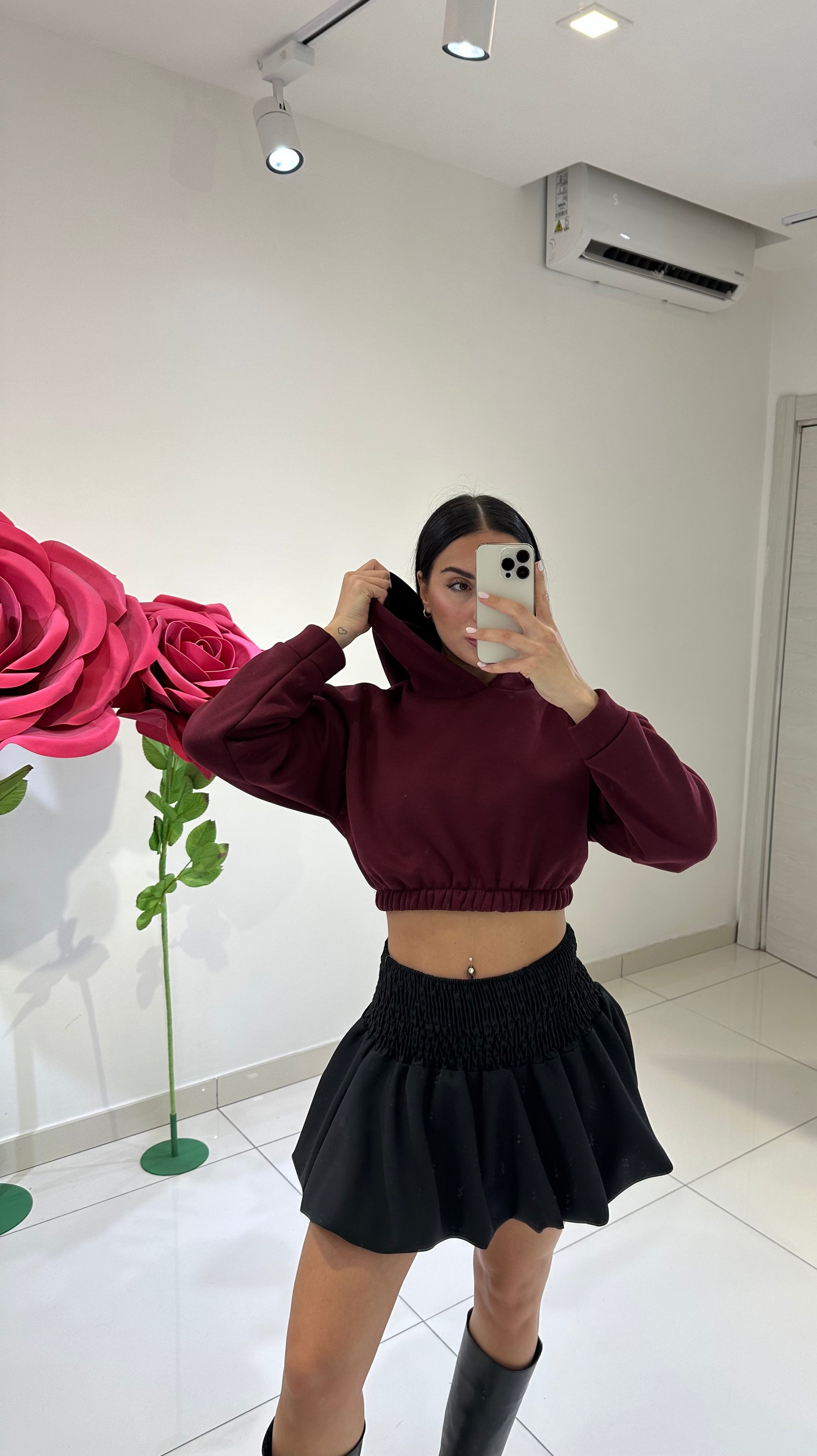 FELPA CROP CON ELASTICO AL FONDO, CAPPUCCIO , FELPATA ALL’INTERNO. IN VARI COLORI