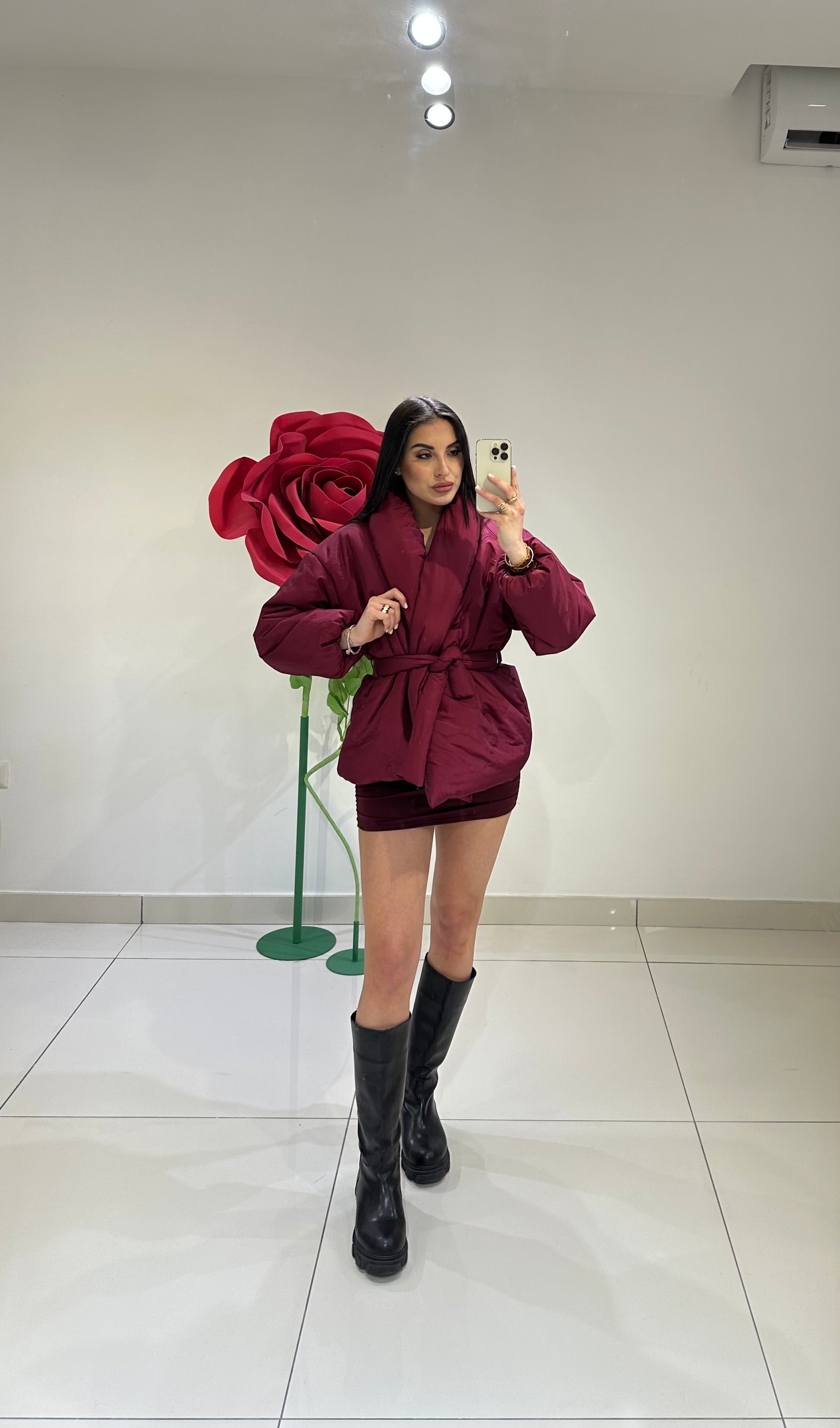 GIUBBOTTO DAL TESSUTO OPACO, SCOLLO AMPIO CON RISVOLTO, CINTURA INCLUSA, FODERATO ALL’INTERNO, COMODA VESTIBILITÀ. IN VARI COLORI