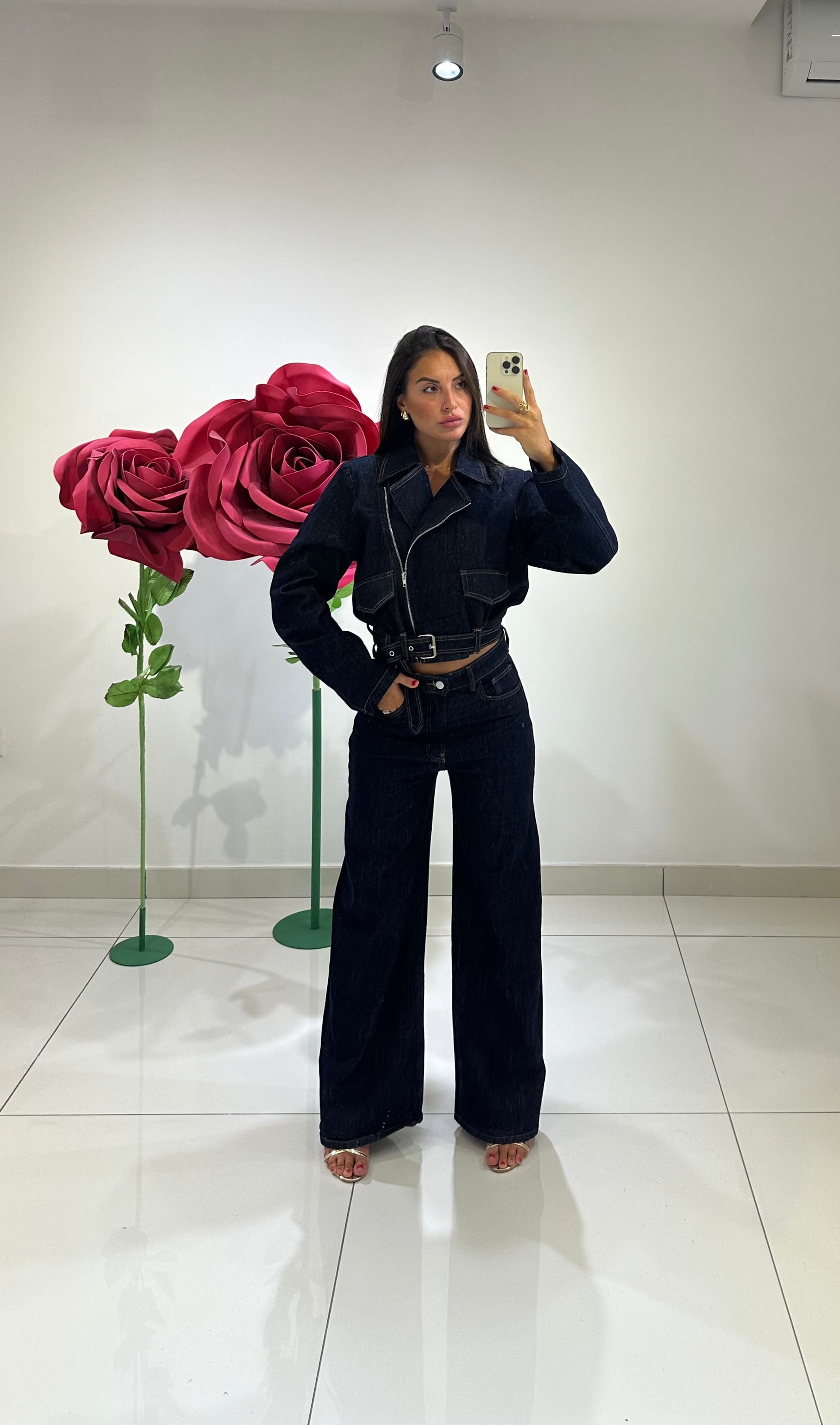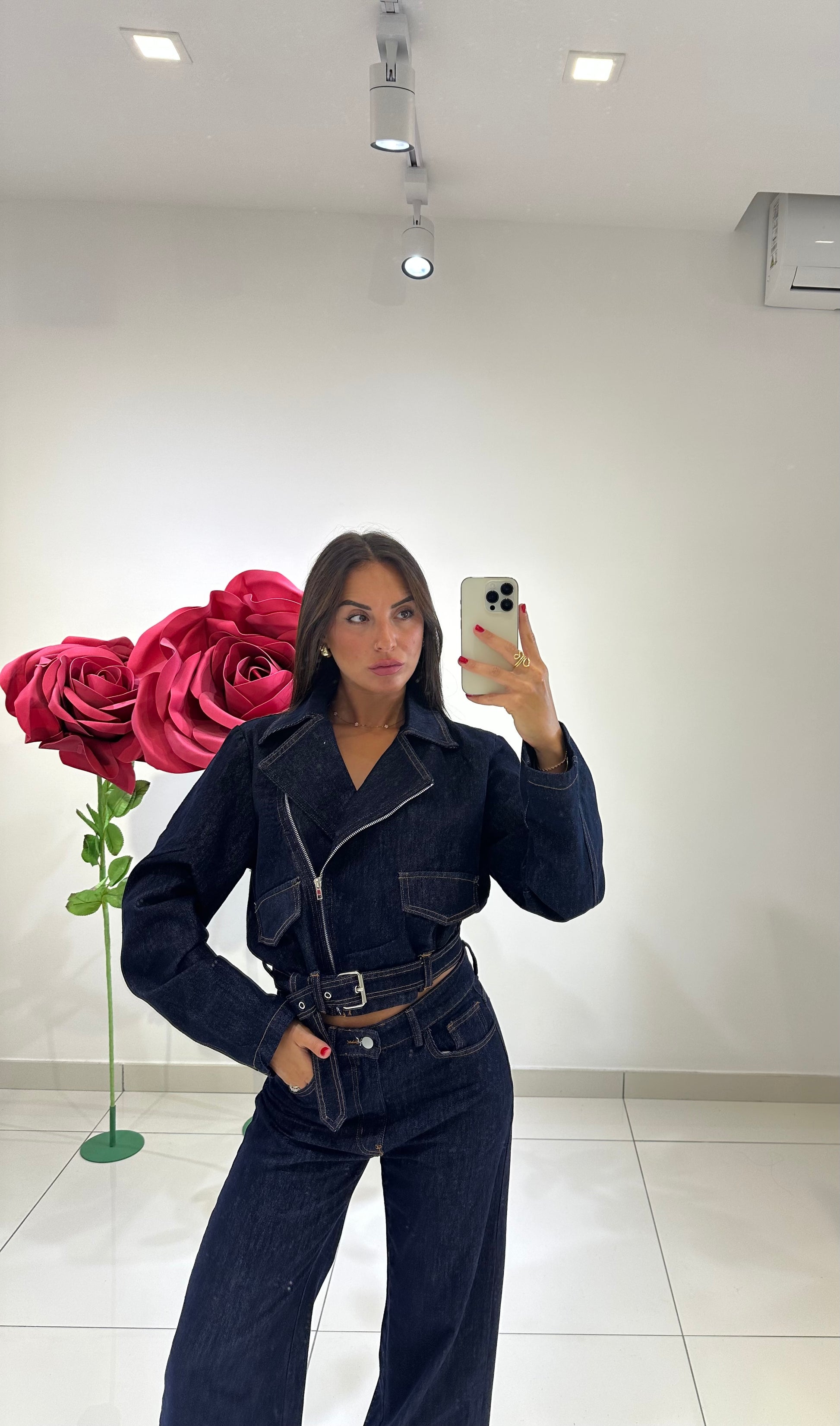 GIACCA CROP IN DENIM CON FIBIA E ZIP