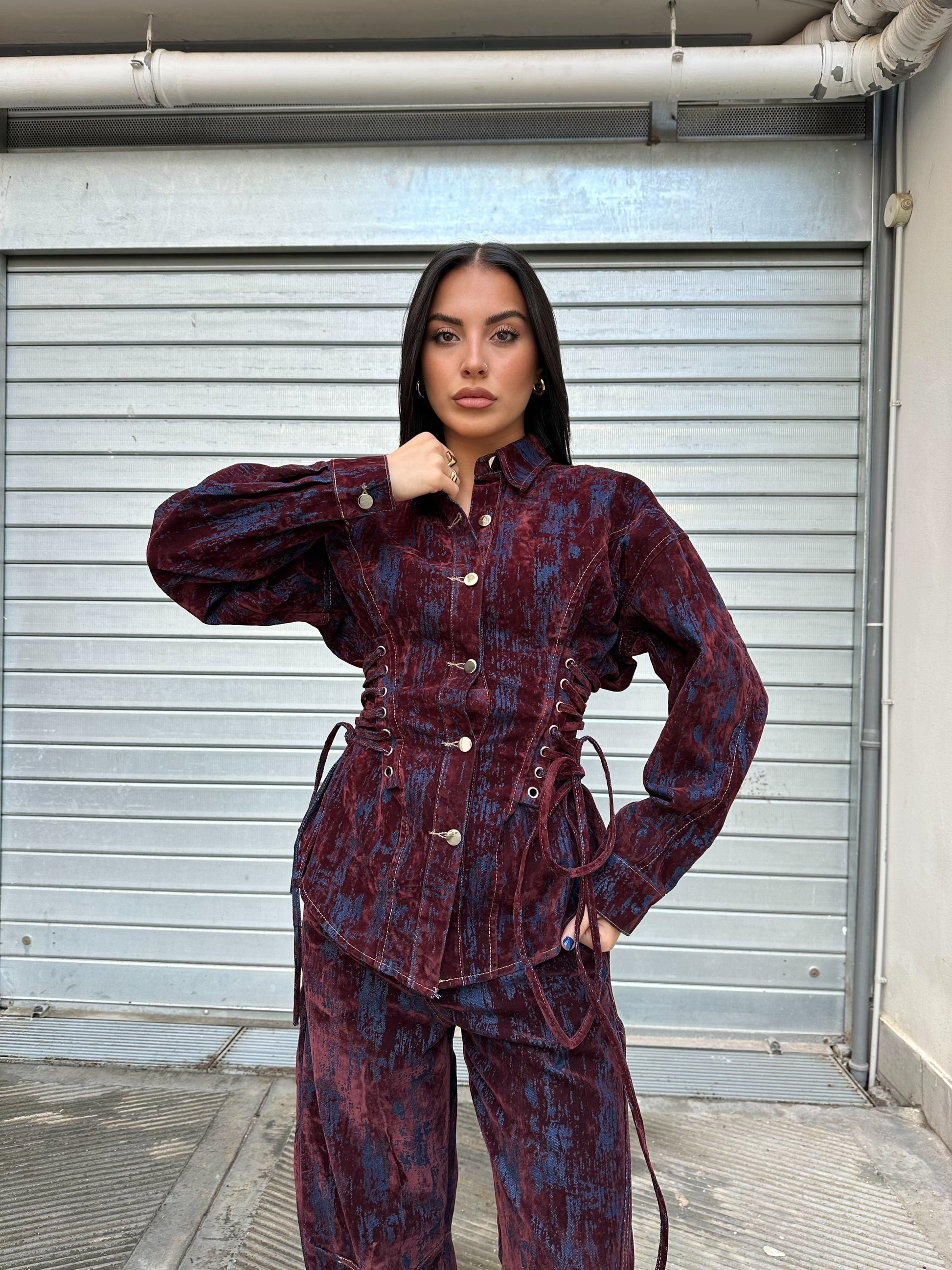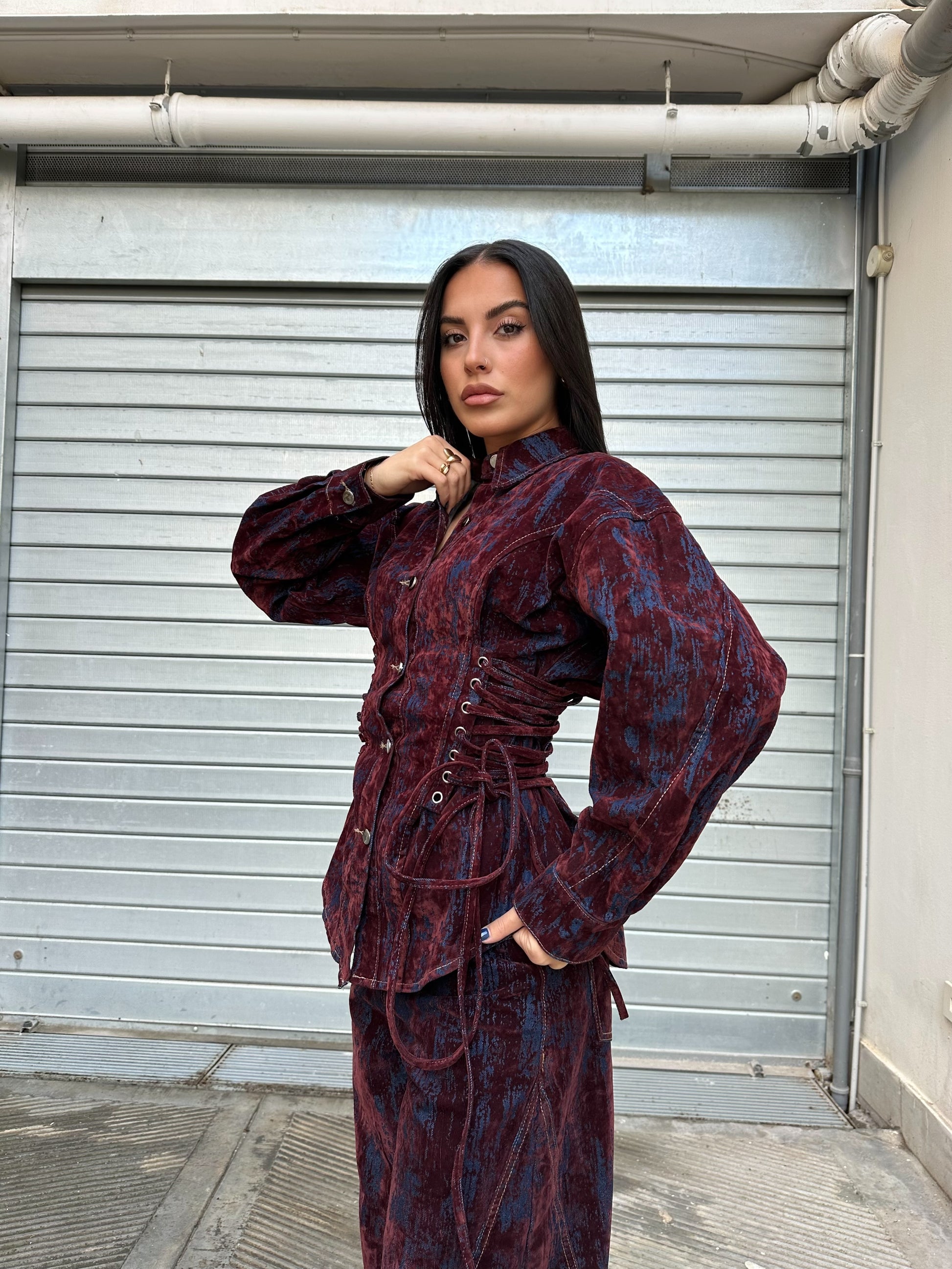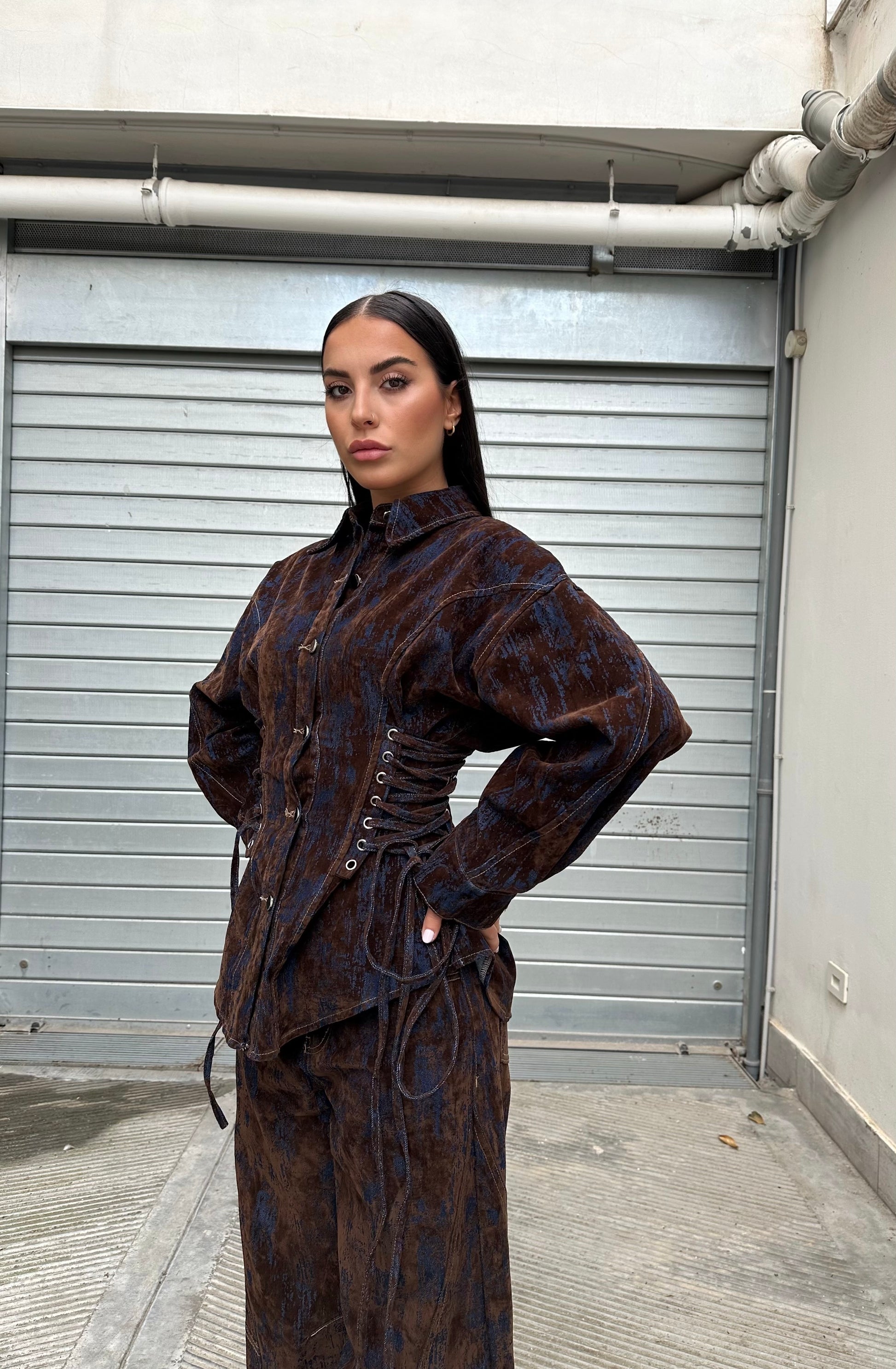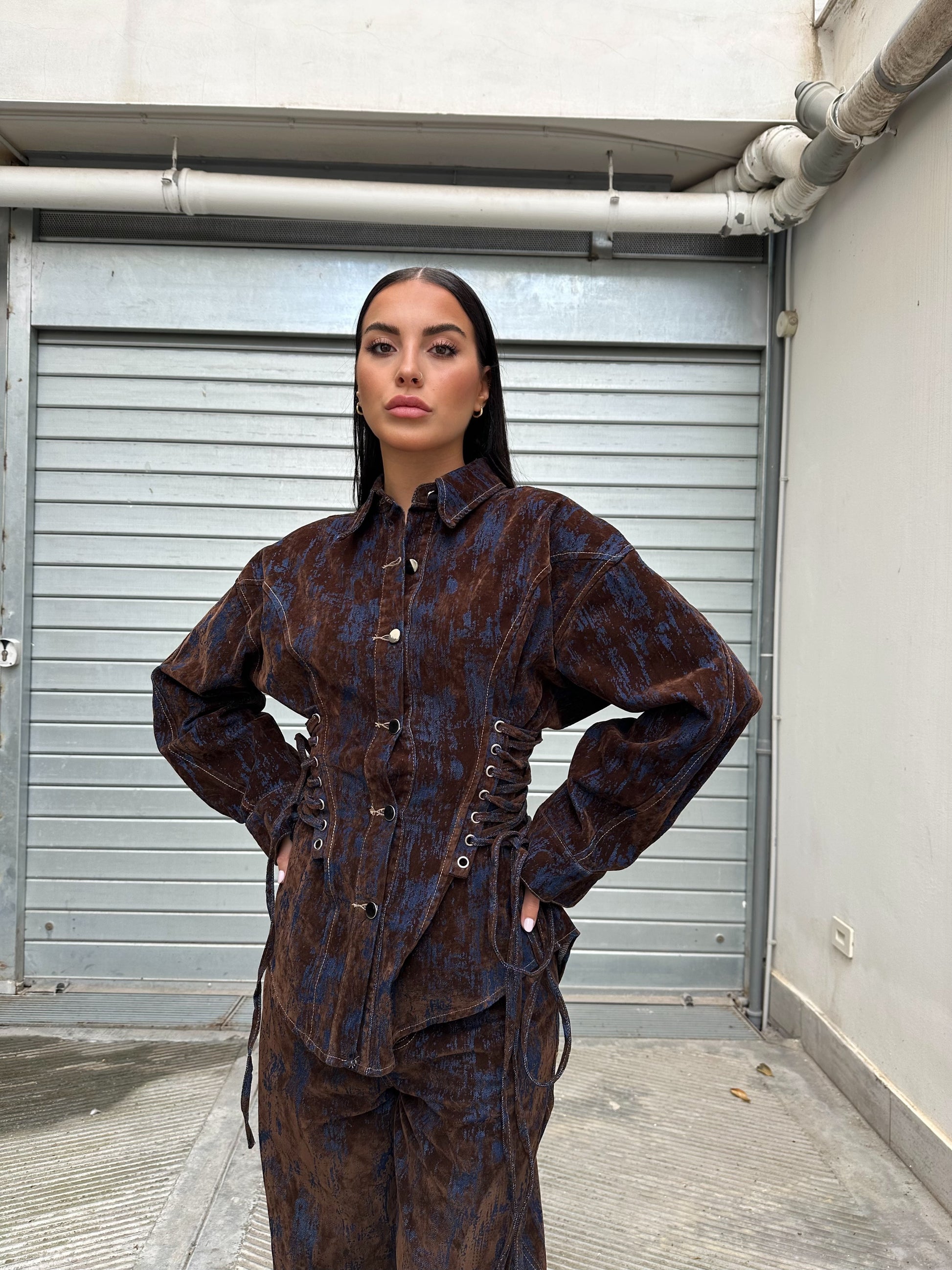 JACKET IN DENIM DAL COLORE SFUMATO, CIN STRINGHE REGOLABILI AI LATI, IN VARI COLORI