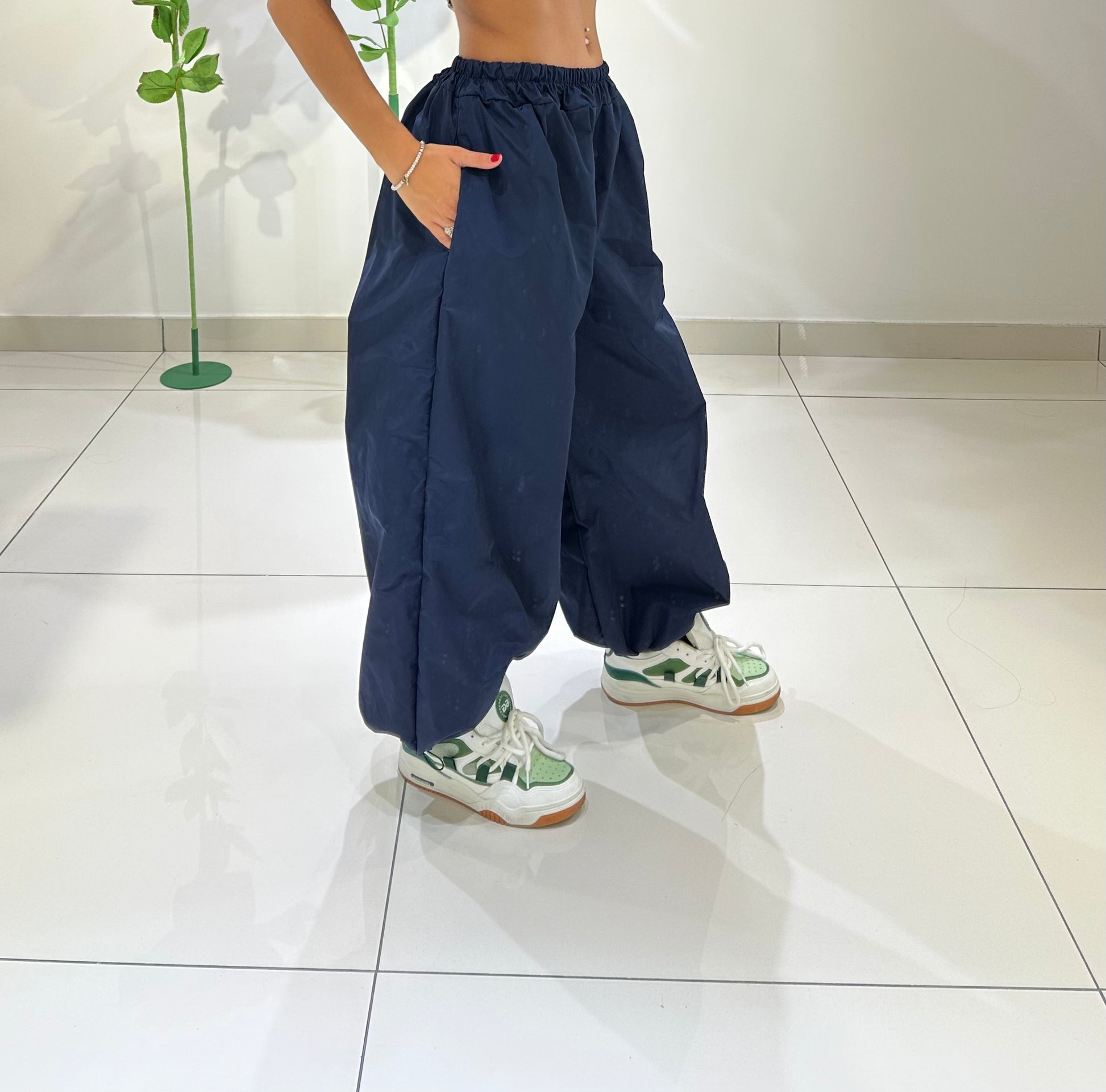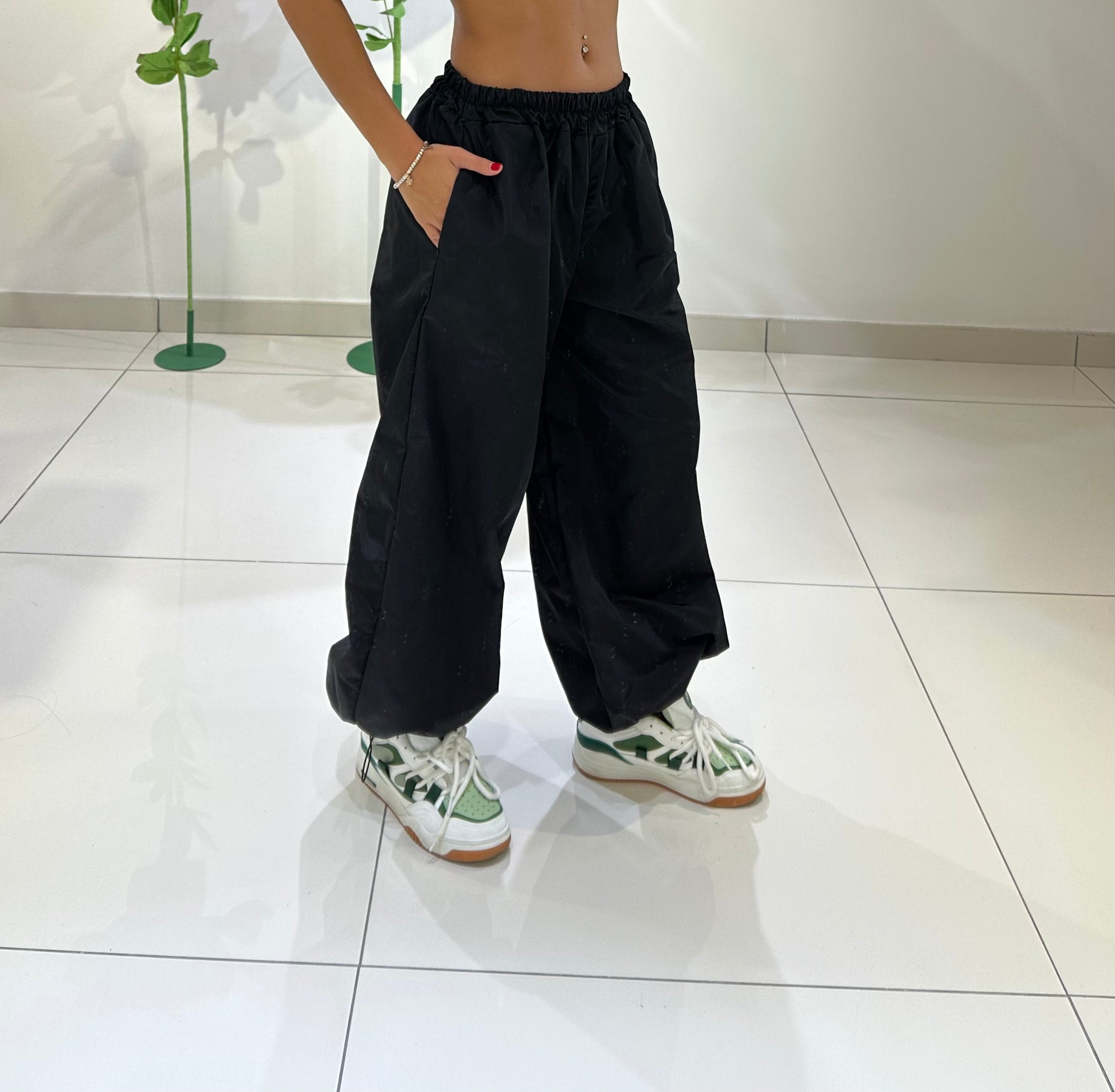 PARACUTE TESSUTO TECNICO, ELASTICO IN VITA E ALLA CAVIGLIA, CON TASCHE LATERALI. IN VARI COLORI