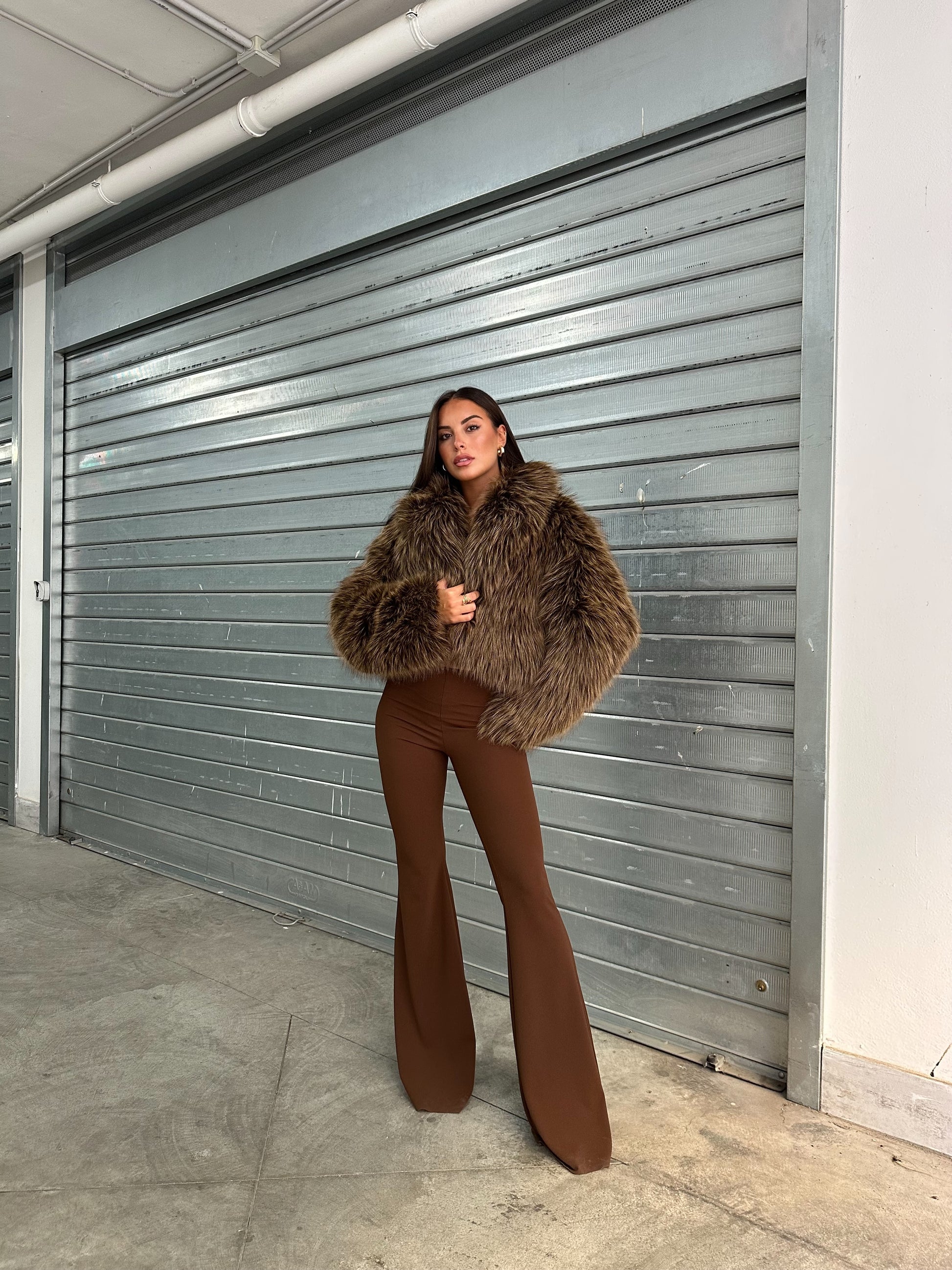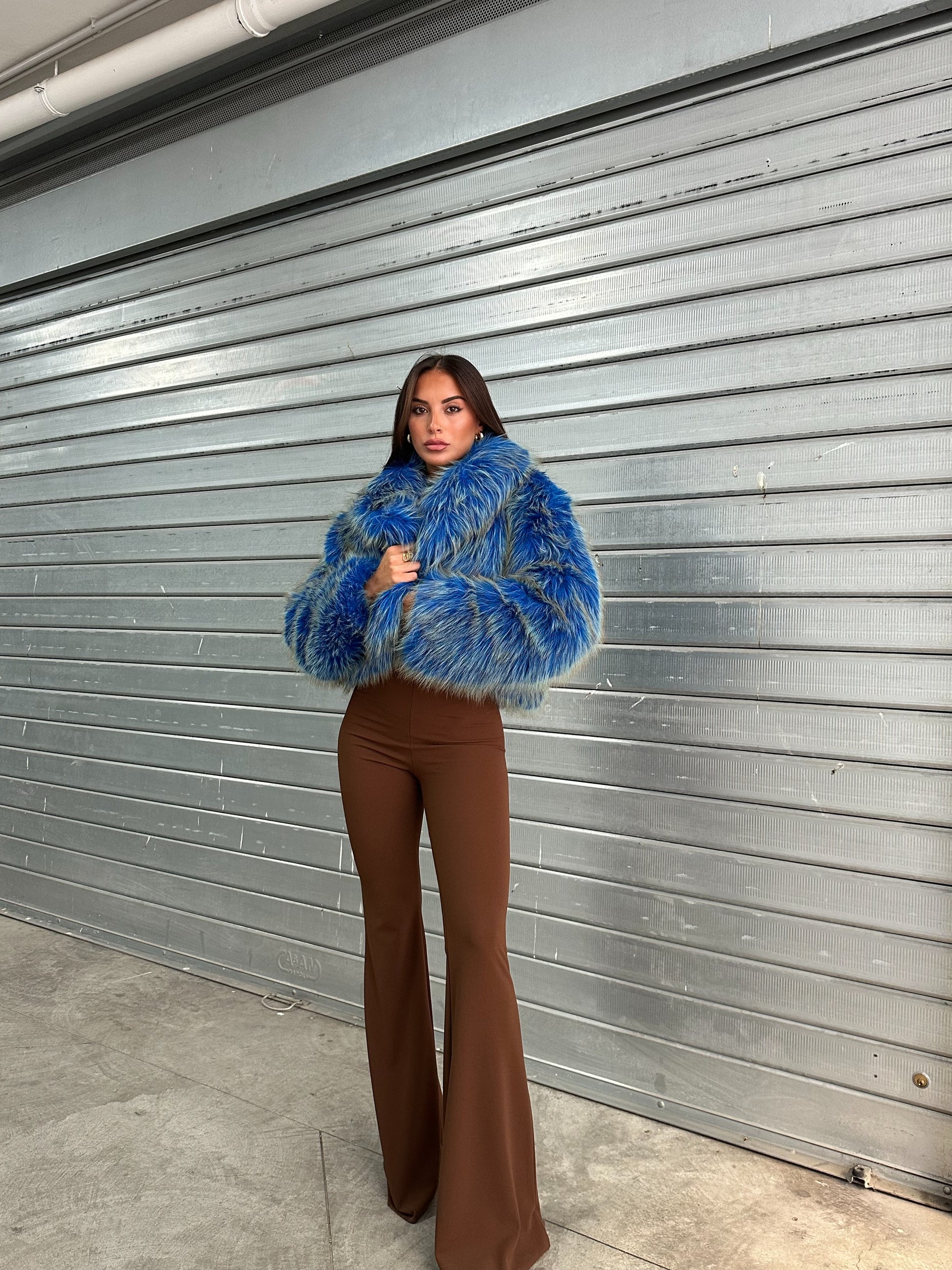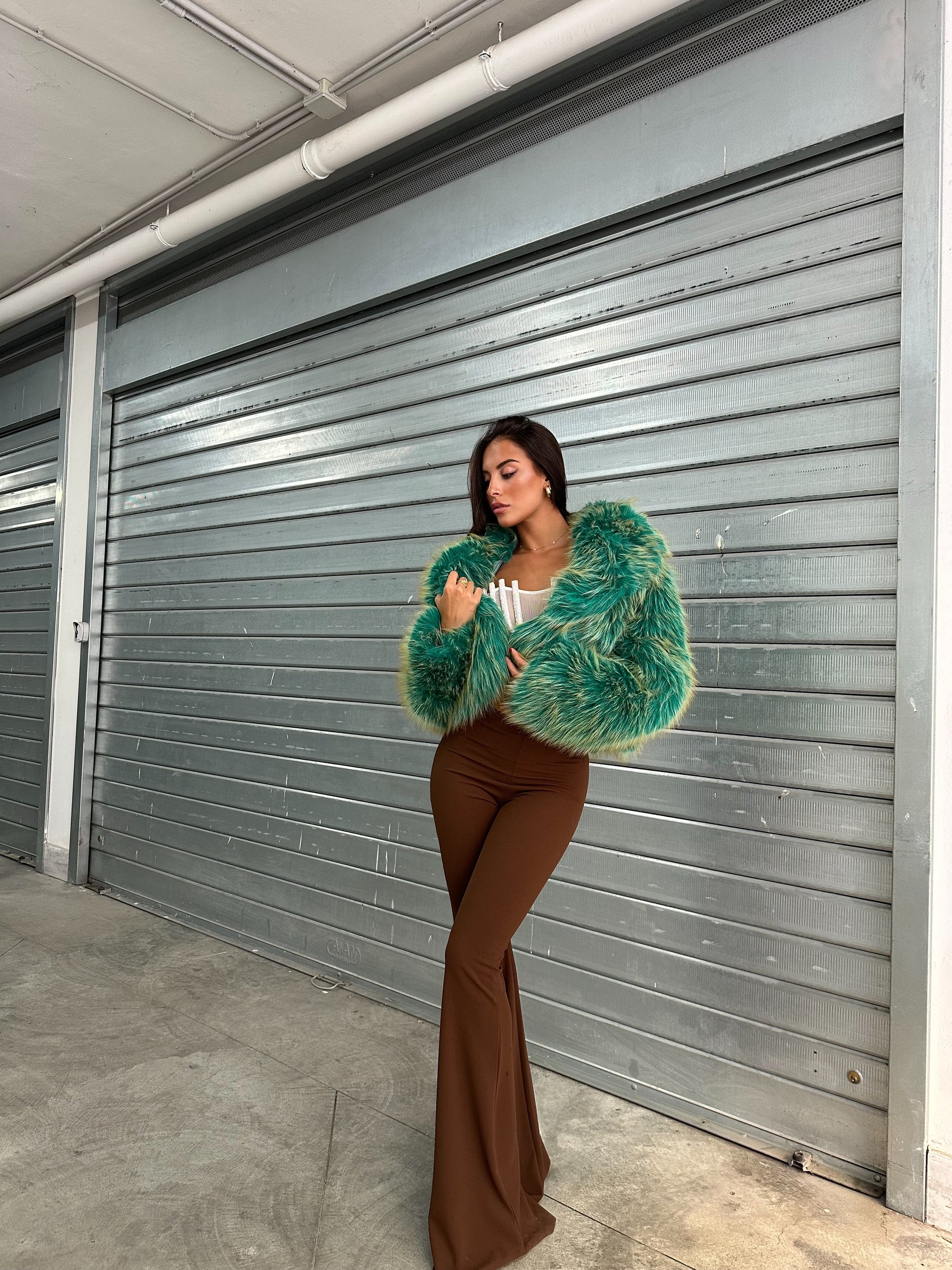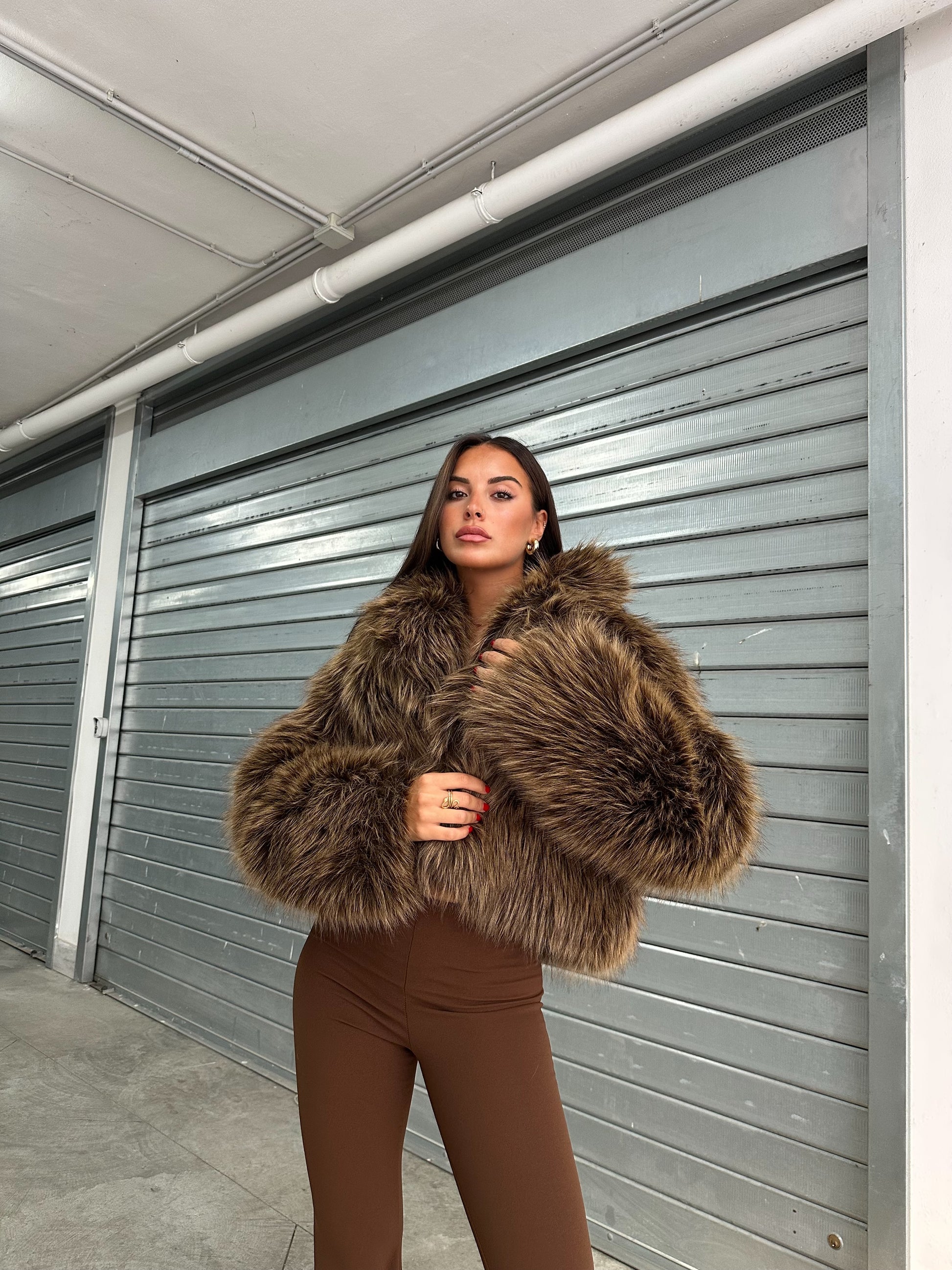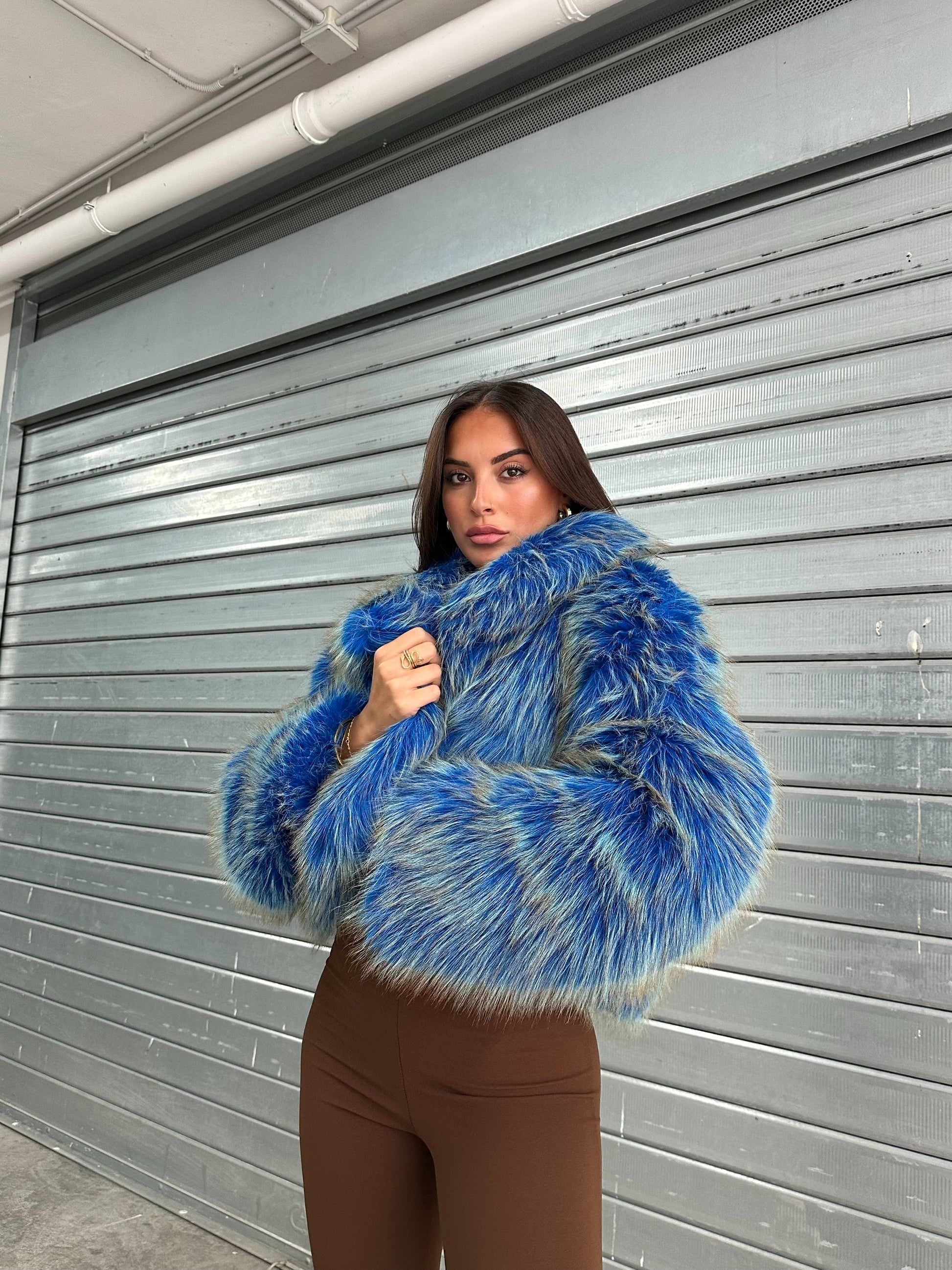PELLICCIA CROP, DAL COLORE SFUMATO, FODERATA ALL’INTERNO, SCOLLO AMPIO, CON CHIAPPA COME CHIUSURA NASCOSTA. IN VARI COLORI