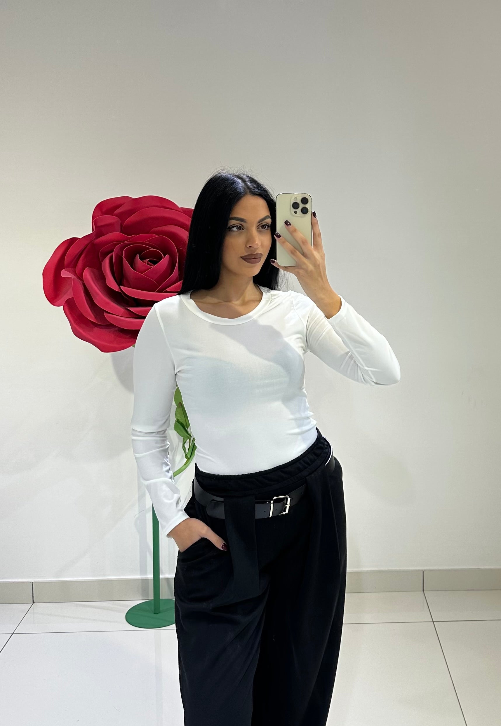 BODY IN TESSUTO ELASTICO LEGGERMENTE TRASPARENTE, TINTA UNITA CON SCOLLO TONDO. IN VARI COLORI