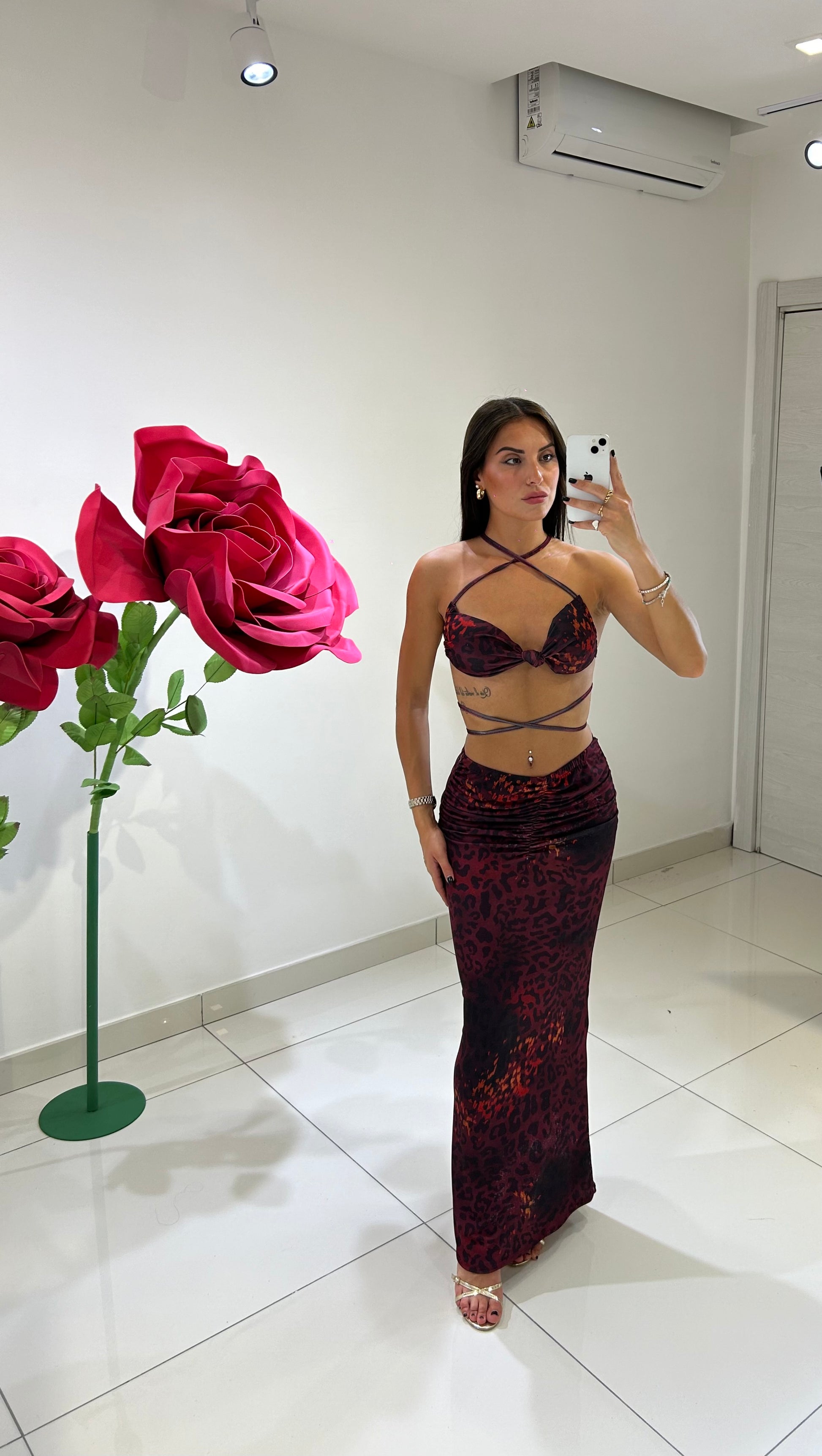SET IN LYCRA, FANTASIA MACULATA E SFUMATA, TOP COPPE INCLUSE, ANNODATO, LACCI REGOLABILI, GONNA SIRENA, TUTTA DRAPPEGGIATA, IN VARI COLORI