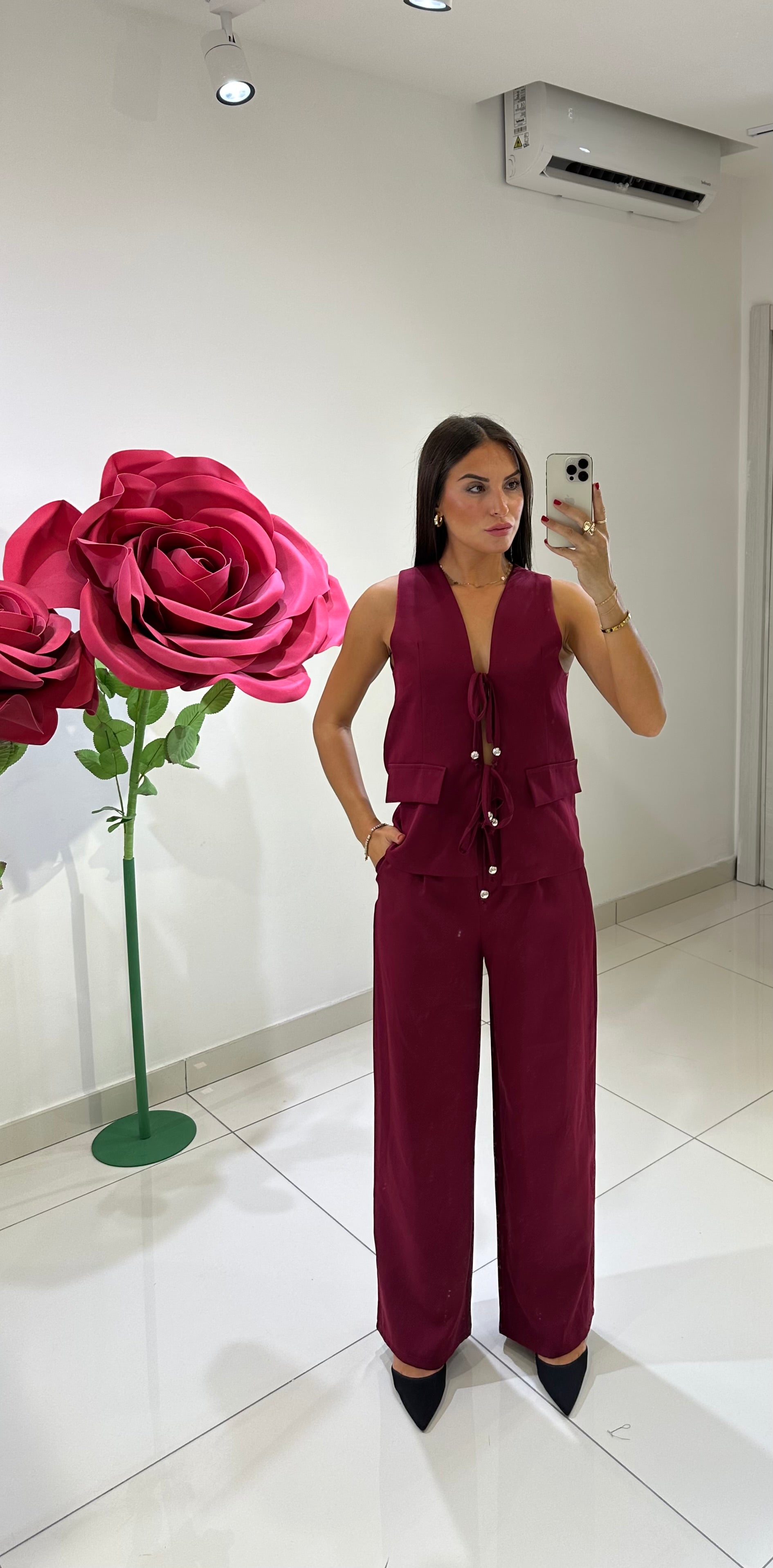 TAILLEUR COMPOSTO DA GILLET APERTO SUL DAVANTI CON CHIUSURA LACCIA, PANTALONE GAMBA DRITTE CON ELASTICO IN VITA E CINTURINO INCLUSO. IN VARI COLORI