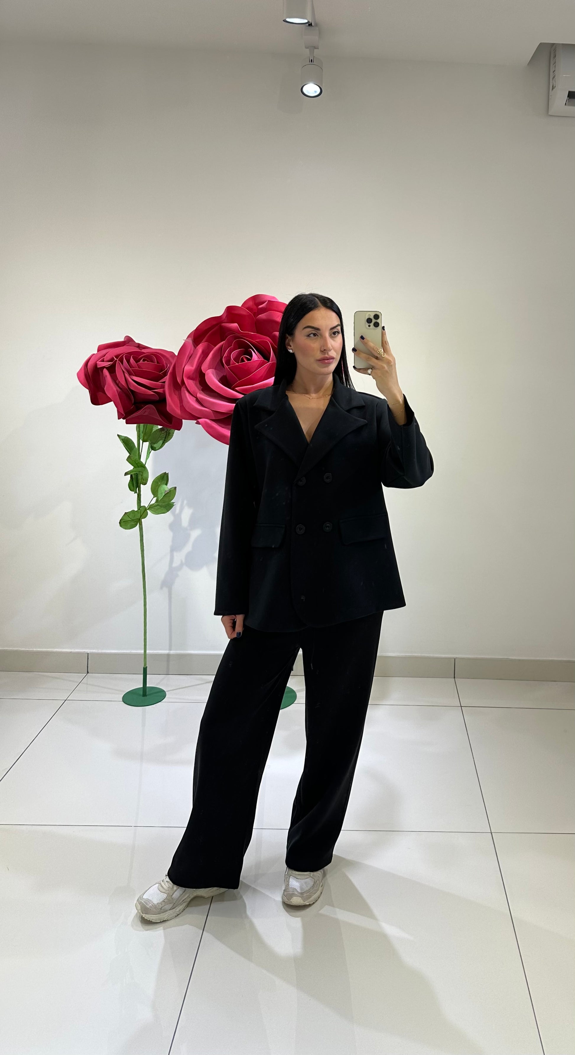 TAILLEUR IN FELPA CON BLAZER OVER DOPPIO PETTO E PANTALONE PALAZZO CON ELASTICO IN VITA. IN VARI COLORI