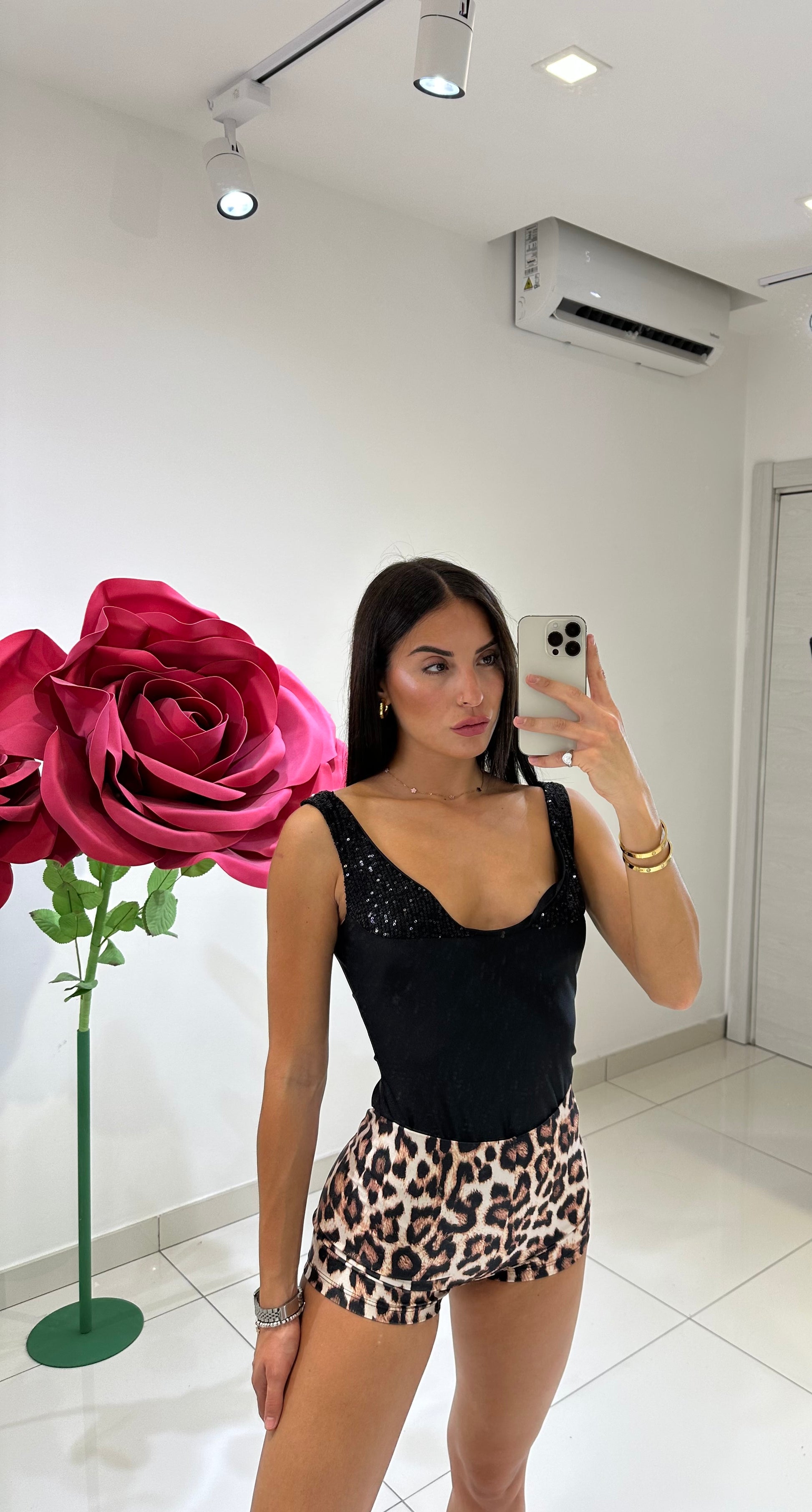 TOP IN LYCRA CON PARTE SUPERIORE IMPREZIOSITA DA PAILLETTES E COPPE INCLUSE