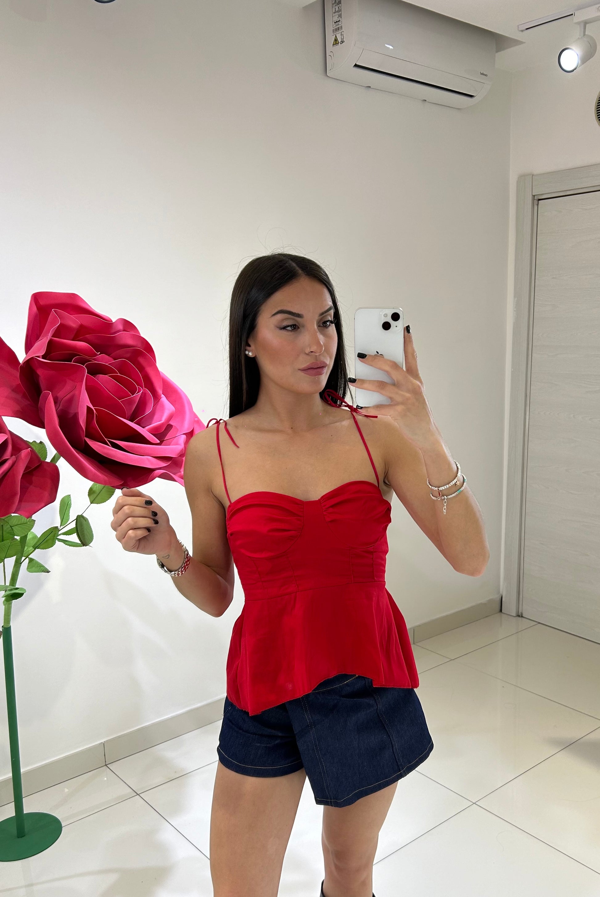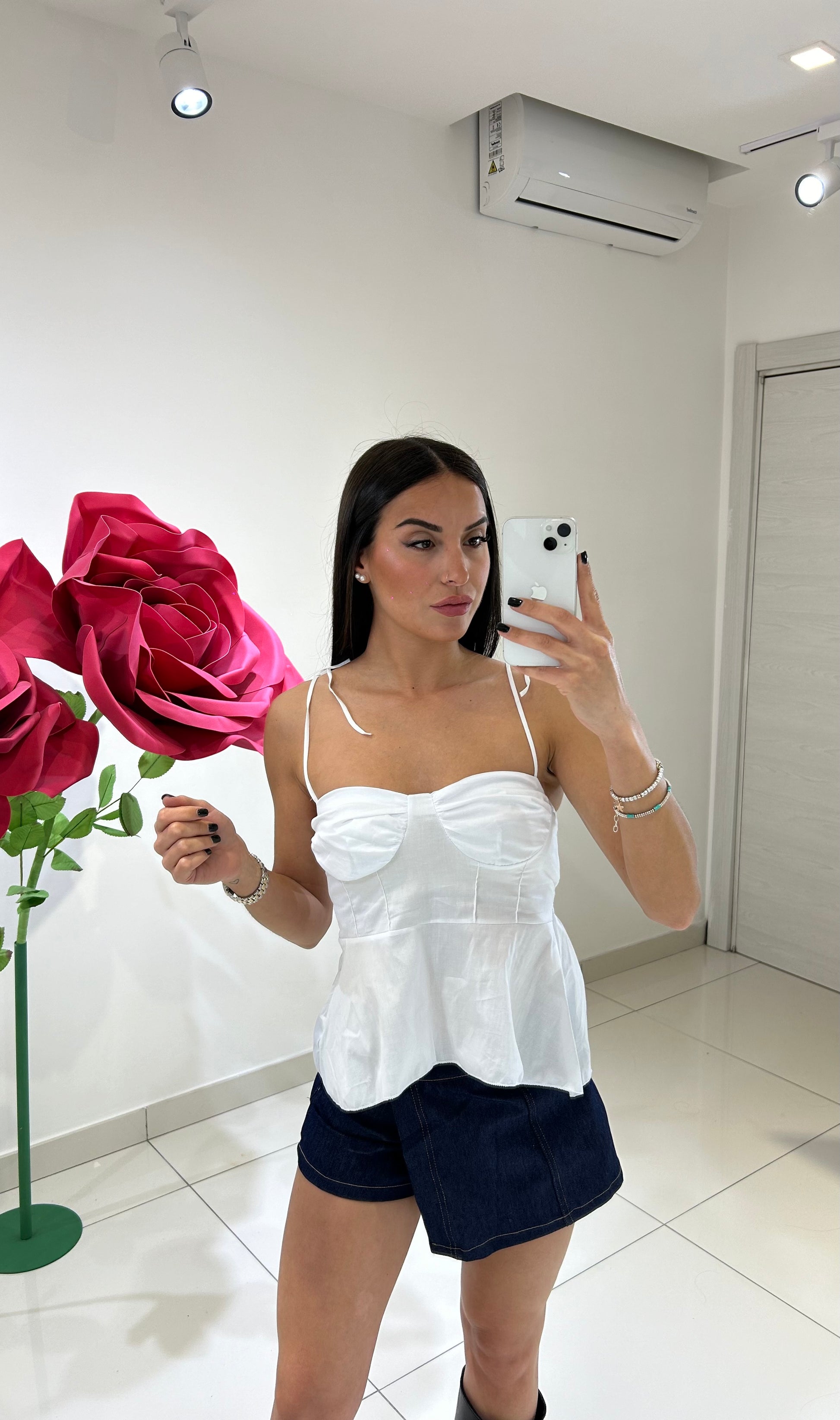 TOP CON DRAPPEGGIO SUL SENO, VOLANT SUL FONDO, BRETELLE ELASTICHE , IN VARI COLORI